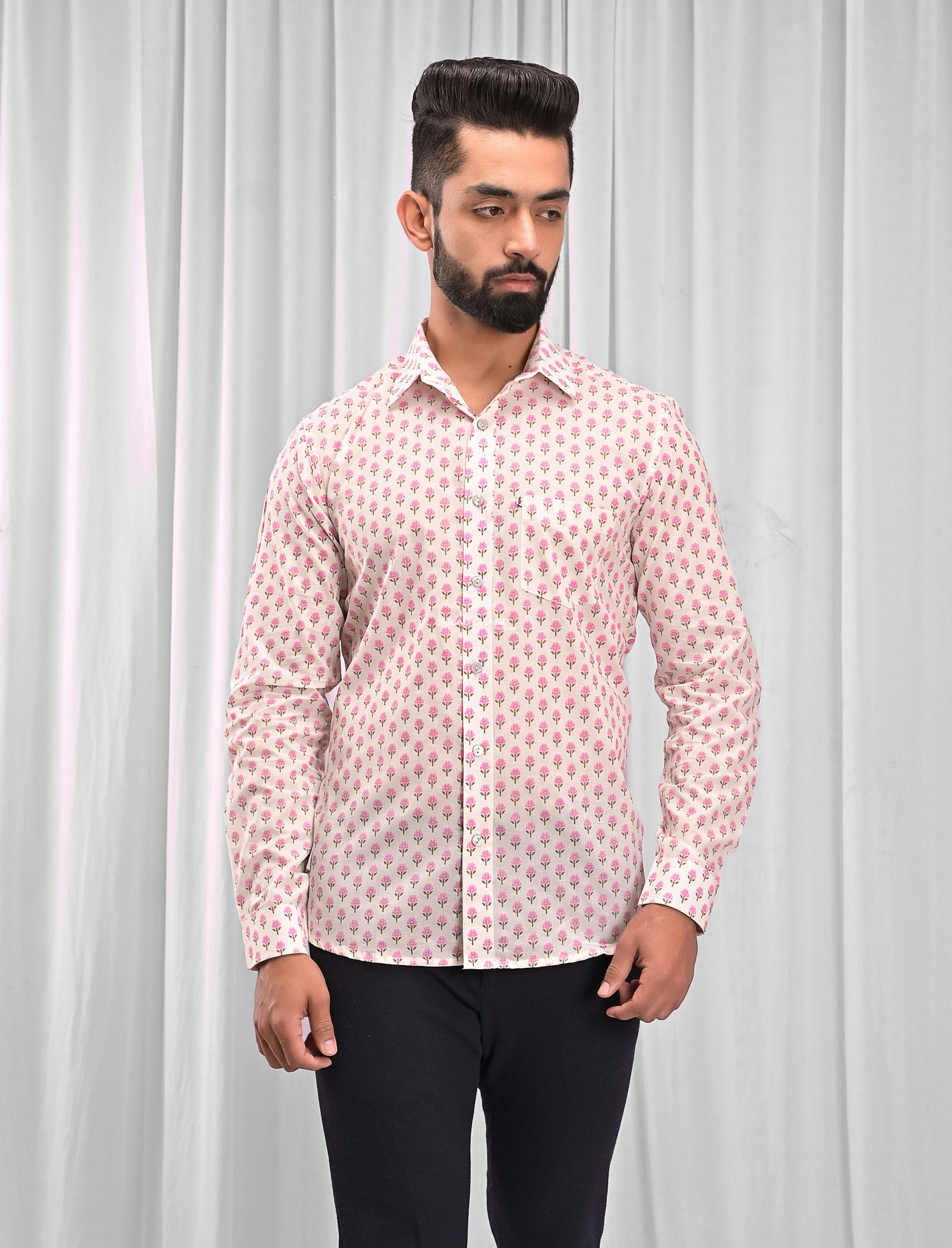 This hand block printed cotton shirt is presented to you by Gulabchand Prints, A well-known brand in hand block prints from over 9 decades. This exclusively hand stitched shirt is made of 100% pure cotton fabric with having hand block printed prints over it. Wear this at your ease and the fabric is so smooth to skin that you will love it and the attractive prints adds more charm to the same.