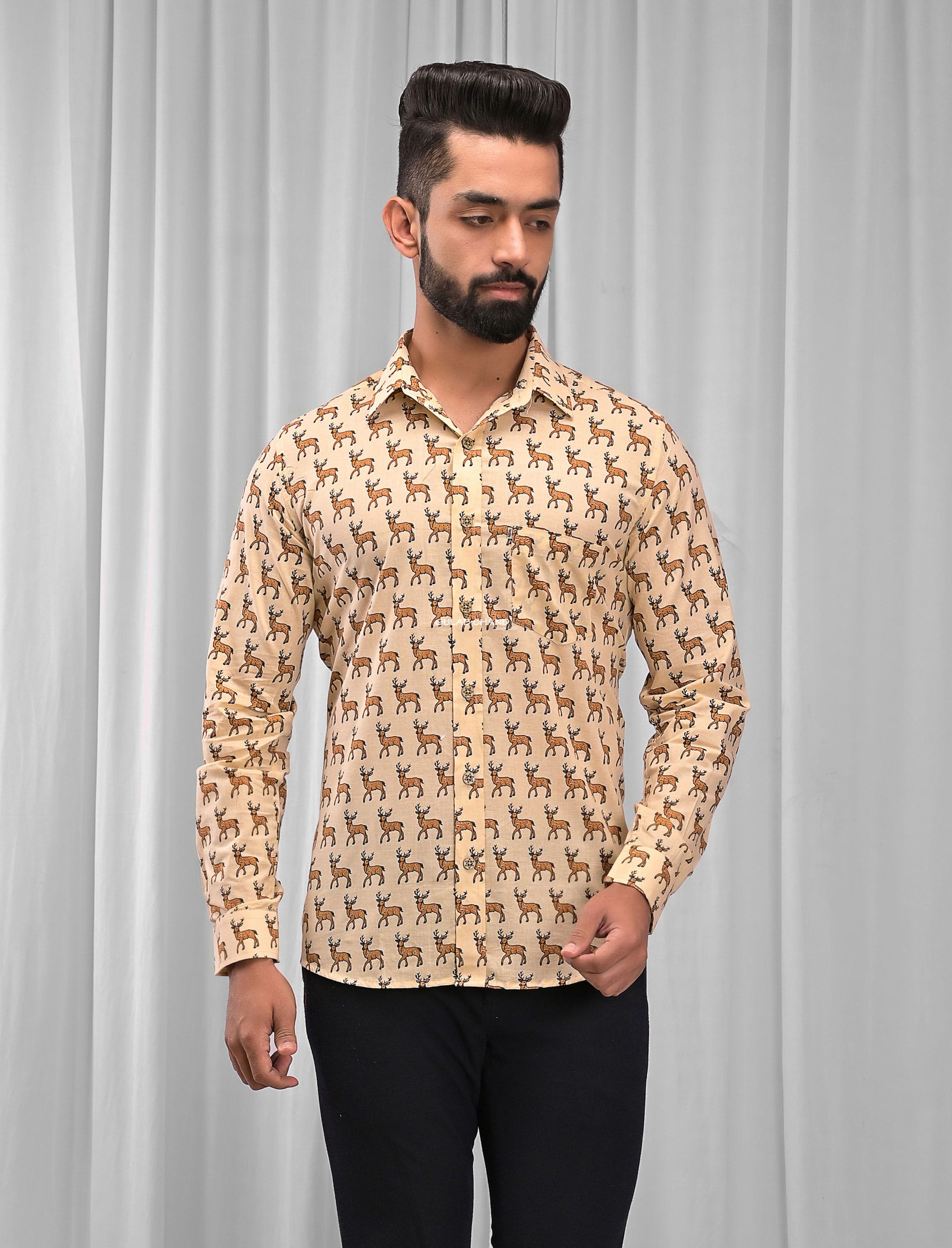 This hand block printed cotton shirt is presented to you by Gulabchand Prints, A well-known brand in hand block prints from over 9 decades. This exclusively hand stitched shirt is made of 100% pure cotton fabric with having hand block printed prints over it. Wear this at your ease and the fabric is so smooth to skin that you will love it and the attractive prints adds more charm to the same.