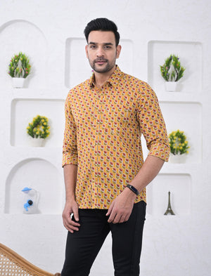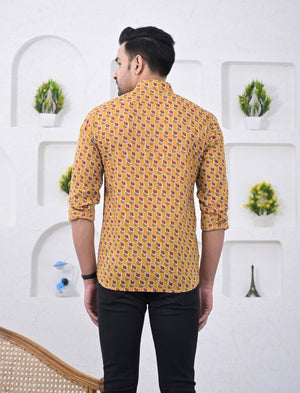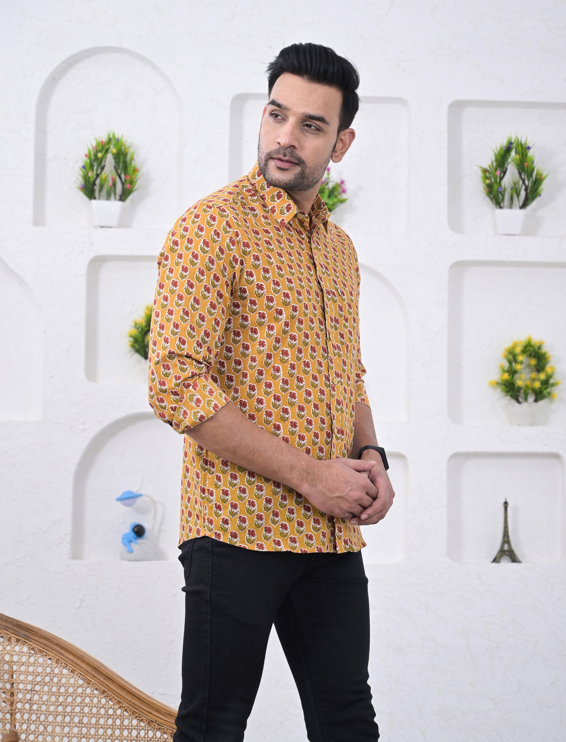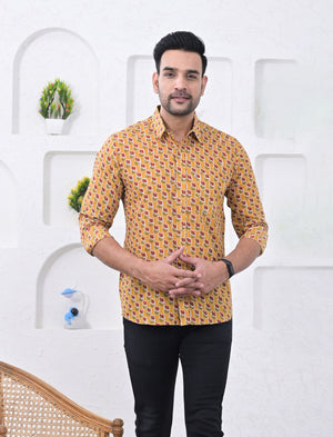 This hand block printed cotton shirt is presented to you by Gulabchand Prints, A well-known brand in hand block prints from over 9 decades. This exclusively hand stitched shirt is made of 100% pure cotton fabric with having hand block printed prints over it. Wear this at your ease and the fabric is so smooth to skin that you will love it and the attractive prints adds more charm to the same.