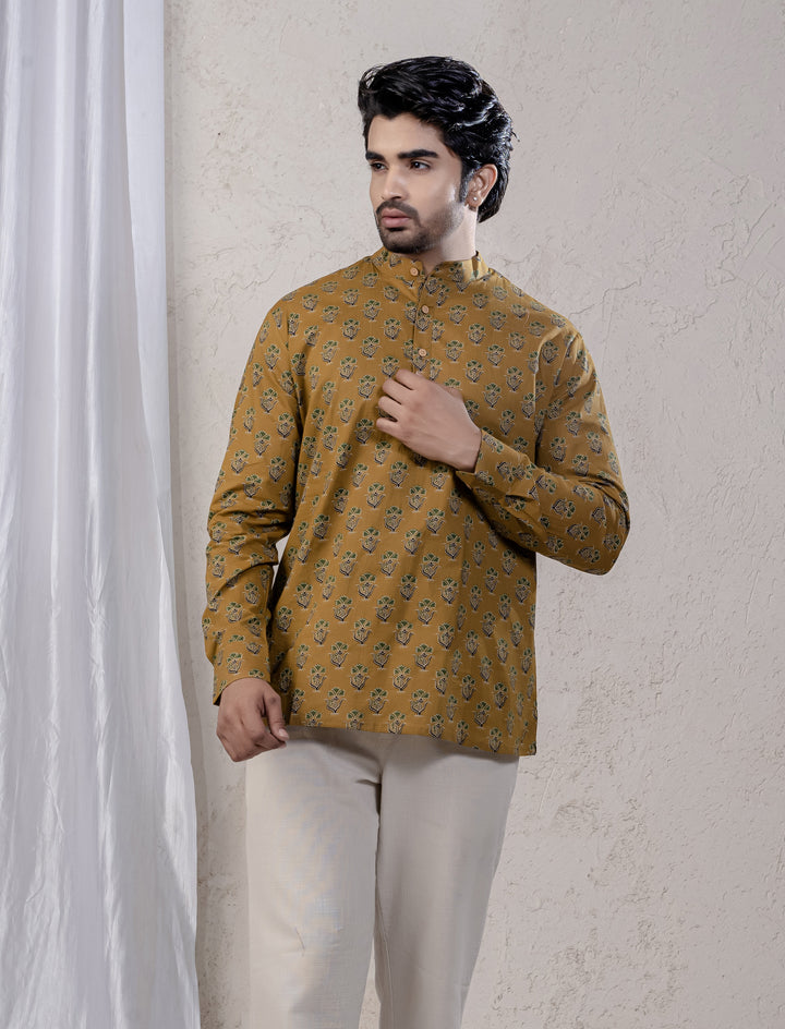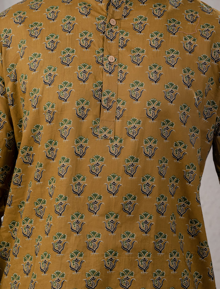 This hand block printed cotton kurta is presented to you by Gulabchand Prints, A well-known brand in hand block prints from over 9 decades. This exclusively hand stitched kurta is made of 100% pure cotton fabric with having hand block printed prints over it. Wear this at your ease and the fabric is so smooth to skin that you will love it and the attractive prints adds more charm to the same.