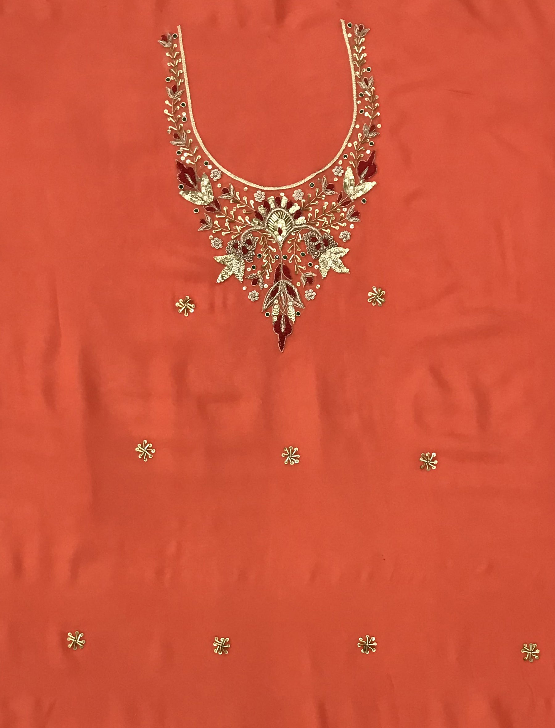 Georgette Unstitched Kurta Fabric With Hand Work On Yoke