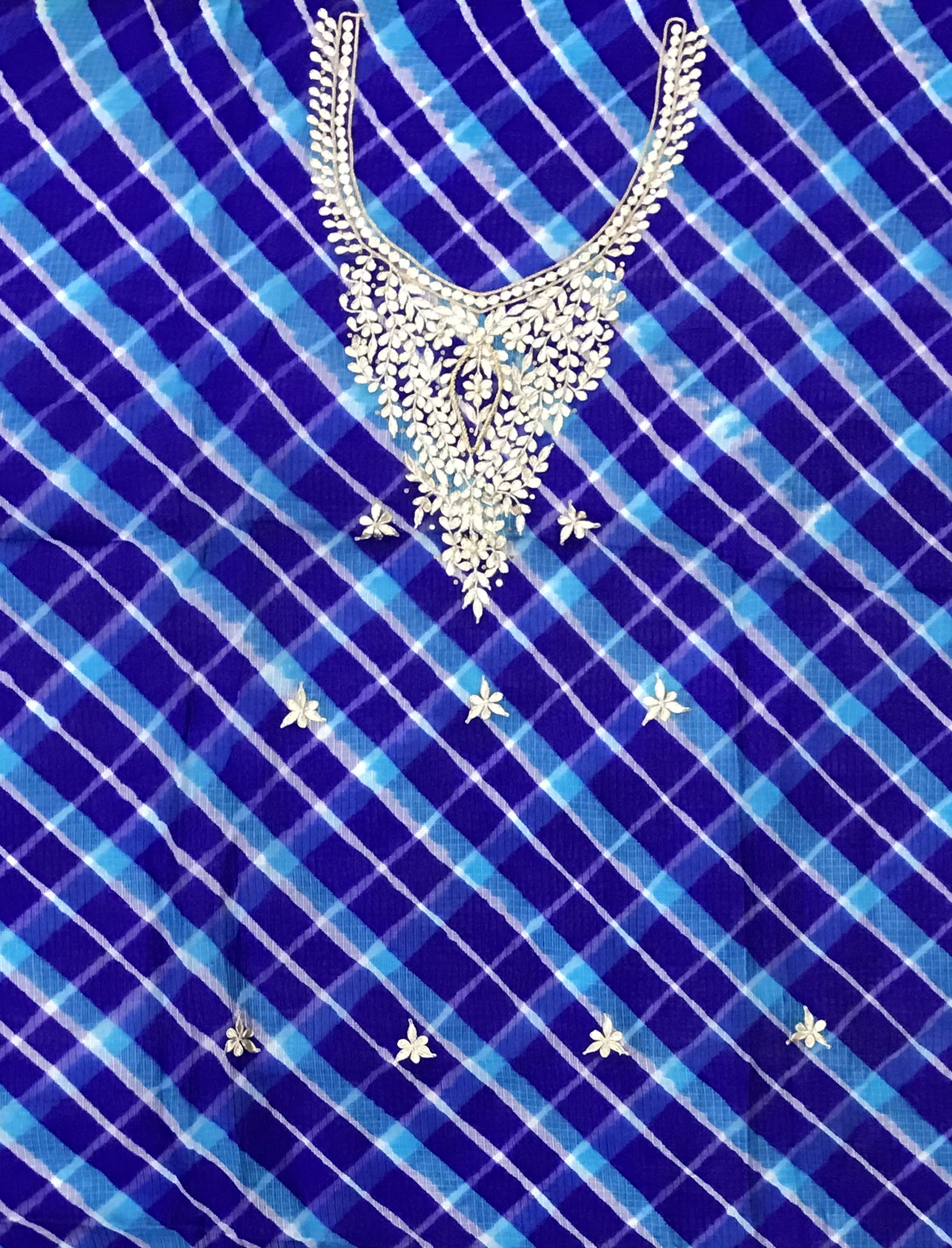 Kota Silk Unstitched Kurta Fabric With Hand Work On Yoke