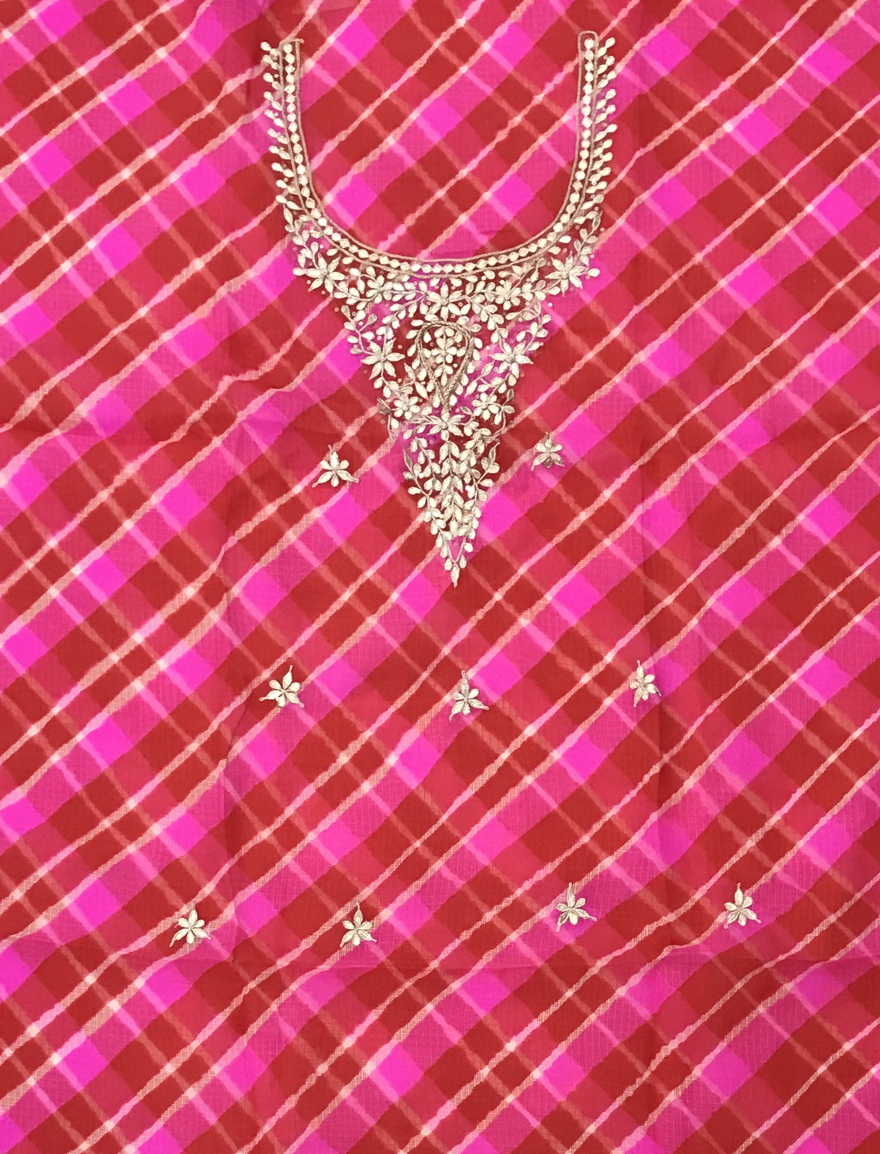 Kota Silk Unstitched Kurta Fabric With Hand Work On Yoke