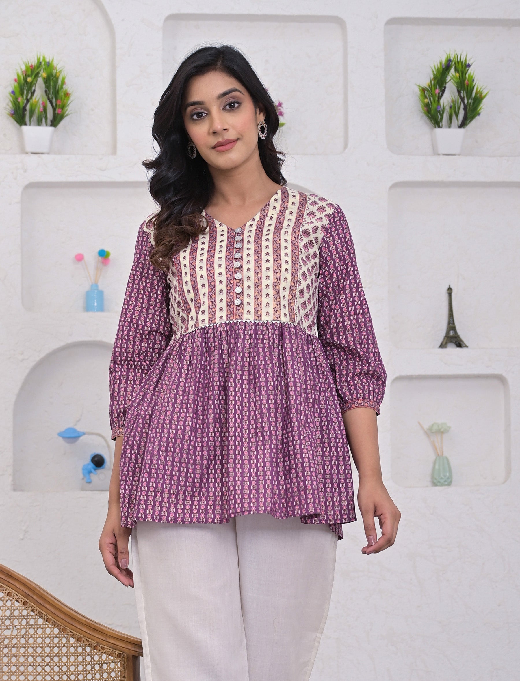 Hand Block Printed Cotton Top By Gulabchand Prints