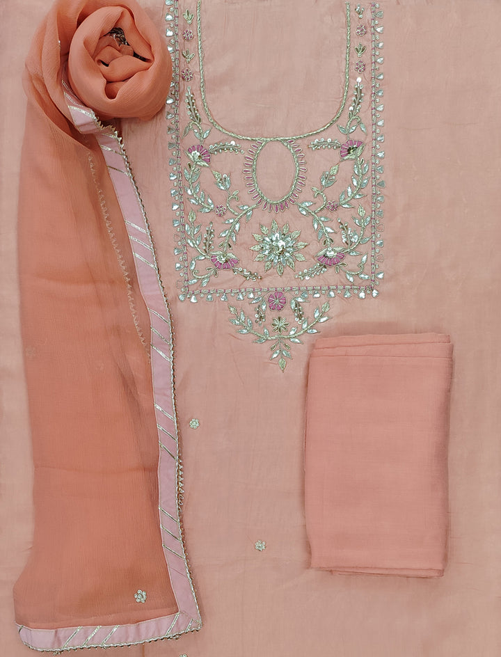 Presenting this partywear unstitched suit for women from house of Gulabchand Prints. This suit is made of best quality fabric with fine prints and design and work over it, This suit can be your perfect match for your festive or functional vibe.