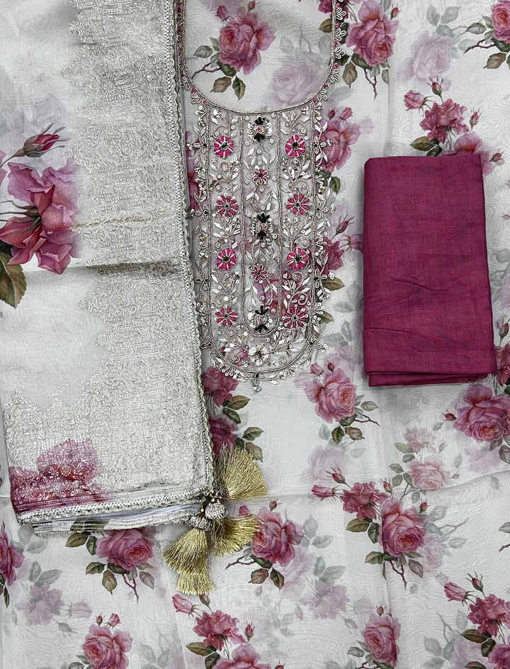 Presenting this partywear unstitched suit for women from house of Gulabchand Prints. This suit is made of best quality fabric with fine prints and design and work over it, This suit can be your perfect match for your festive or functional vibe.