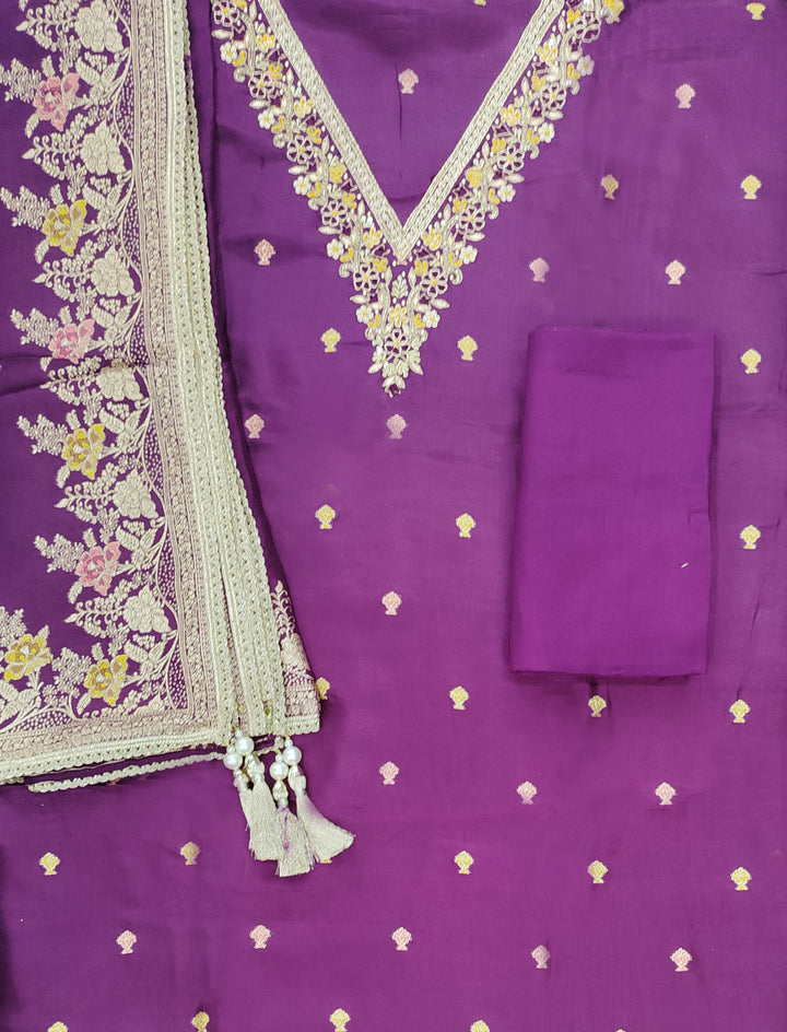 Presenting this partywear unstitched suit for women from house of Gulabchand Prints. This suit is made of best quality fabric with fine prints and design and work over it, This suit can be your perfect match for your festive or functional vibe.