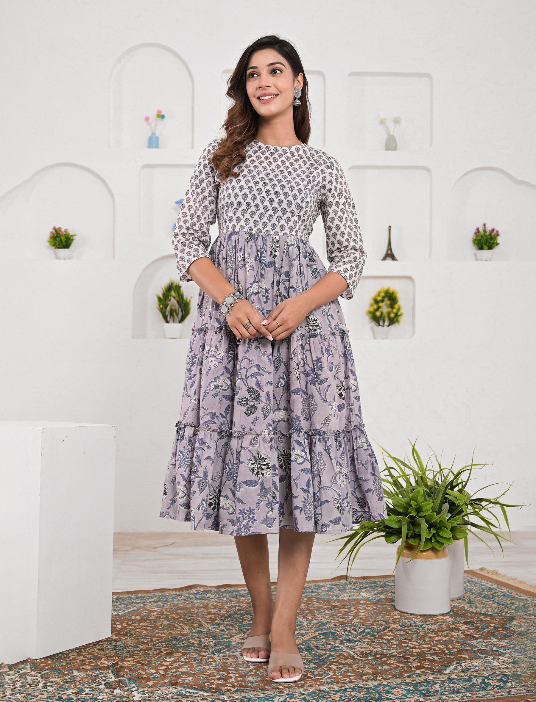 This printed ethnic wear dress is presented to you by Gulabchand Prints, A well-known brand in hand block prints from over 9 decades. This exclusively hand stitched dress is made of 100% pure cotton fabric with having printed prints over it. The dress is best suitable for you to showcase your women hood. Wear this at your ease and the fabric is so smooth to skin that you will love it and the attractive prints adds more charm to the same.