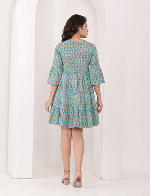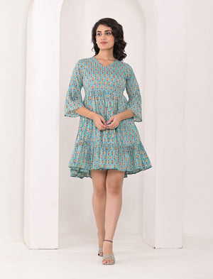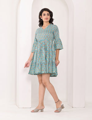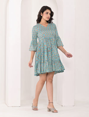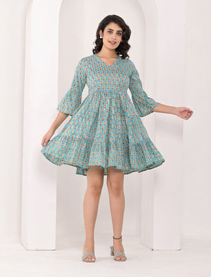 This printed ethnic wear dress is presented to you by Gulabchand Prints, A well-known brand in hand block prints from over 9 decades. This exclusively hand stitched dress is made of 100% pure cotton fabric with having printed prints over it. The dress is best suitable for you to showcase your women hood. Wear this at your ease and the fabric is so smooth to skin that you will love it and the attractive prints adds more charm to the same.