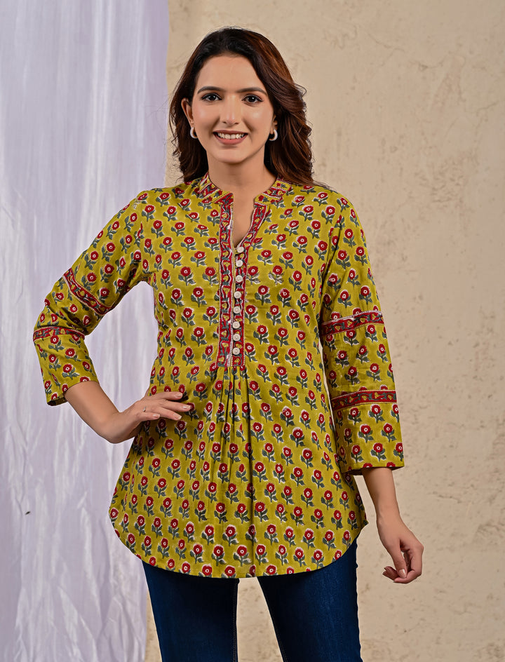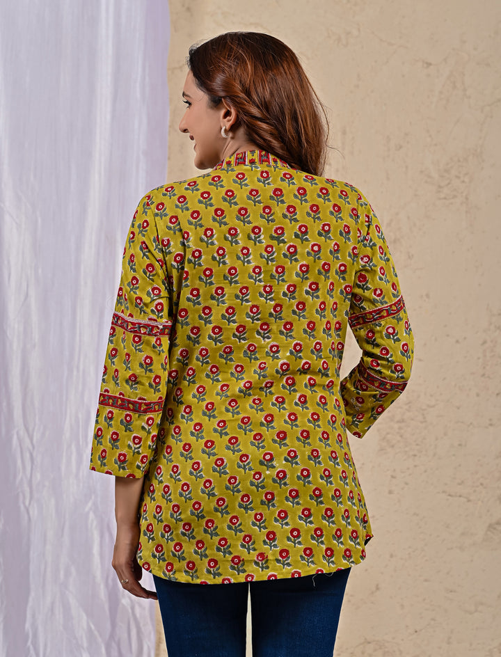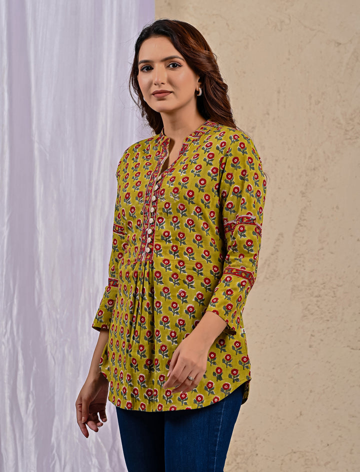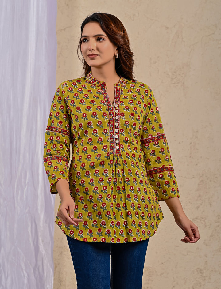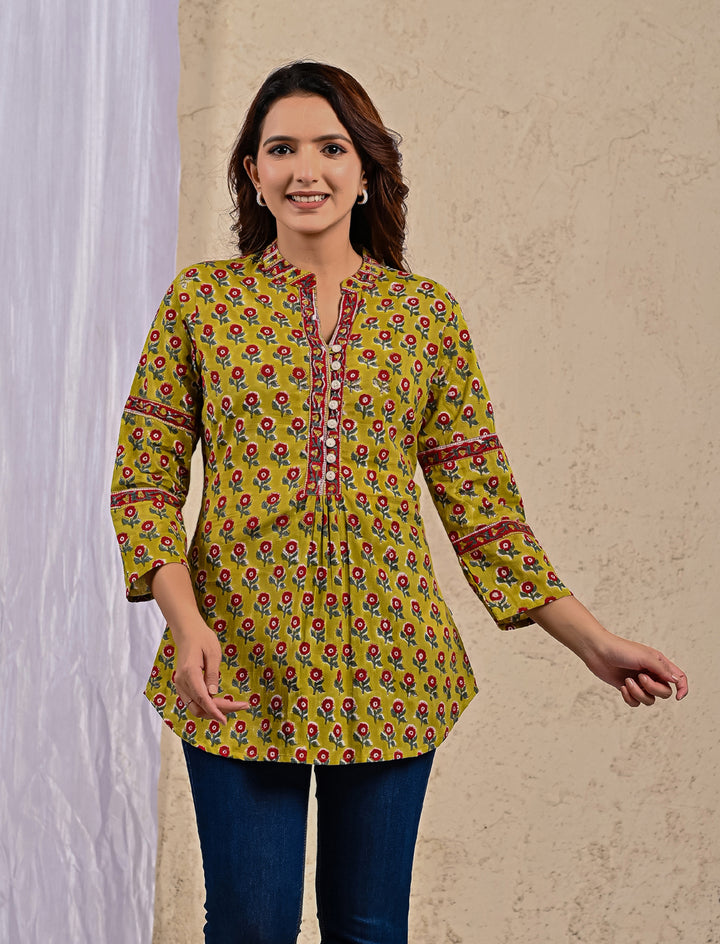 Hand Block Printed Cotton Top By Gulabchand Prints