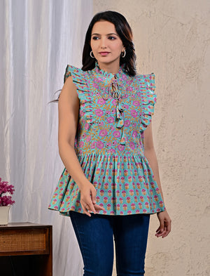 Hand Block Printed Cotton Top By Gulabchand Prints