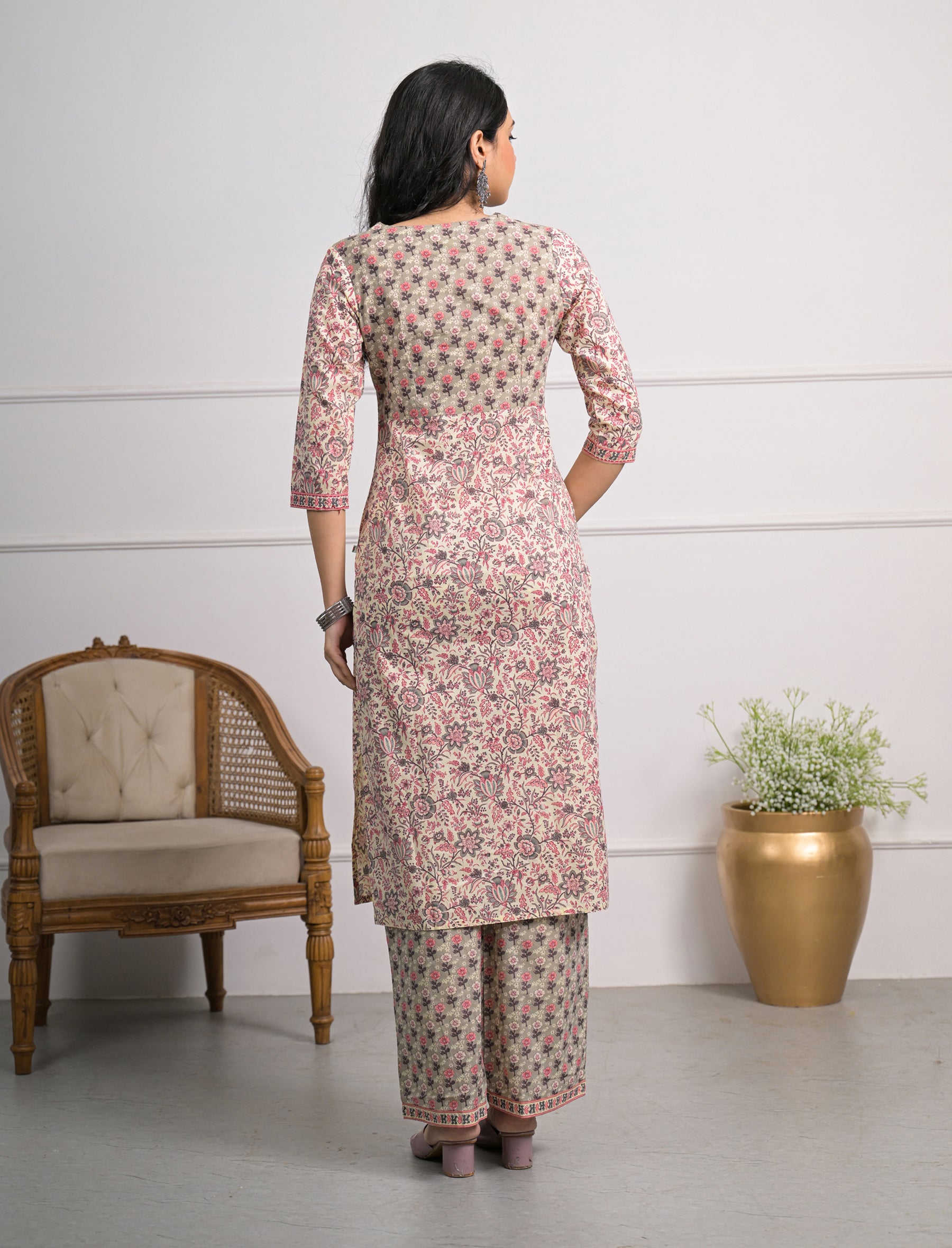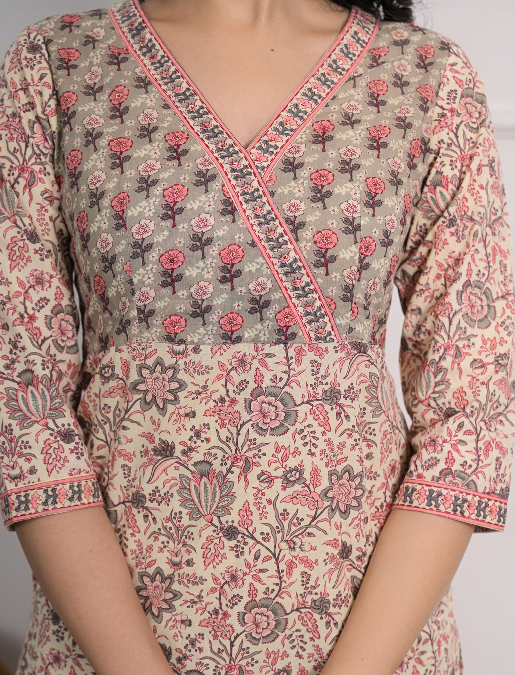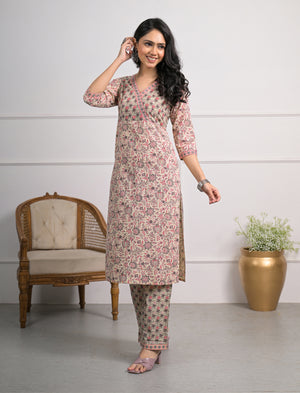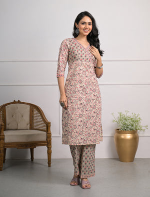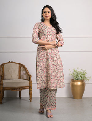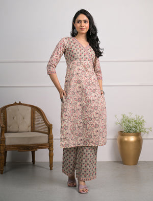 This printed ethnic wear kurta set is presented to you by Gulabchand Prints, A well-known brand in hand block prints from over 9 decades. This exclusively hand stitched kurta set is made of 100% pure cotton fabric with having printed prints over it. The kurta set is best suitable for you to showcase your women hood. Wear this at your ease and the fabric is so smooth to skin that you will love it and the attractive prints adds more charm to the same.