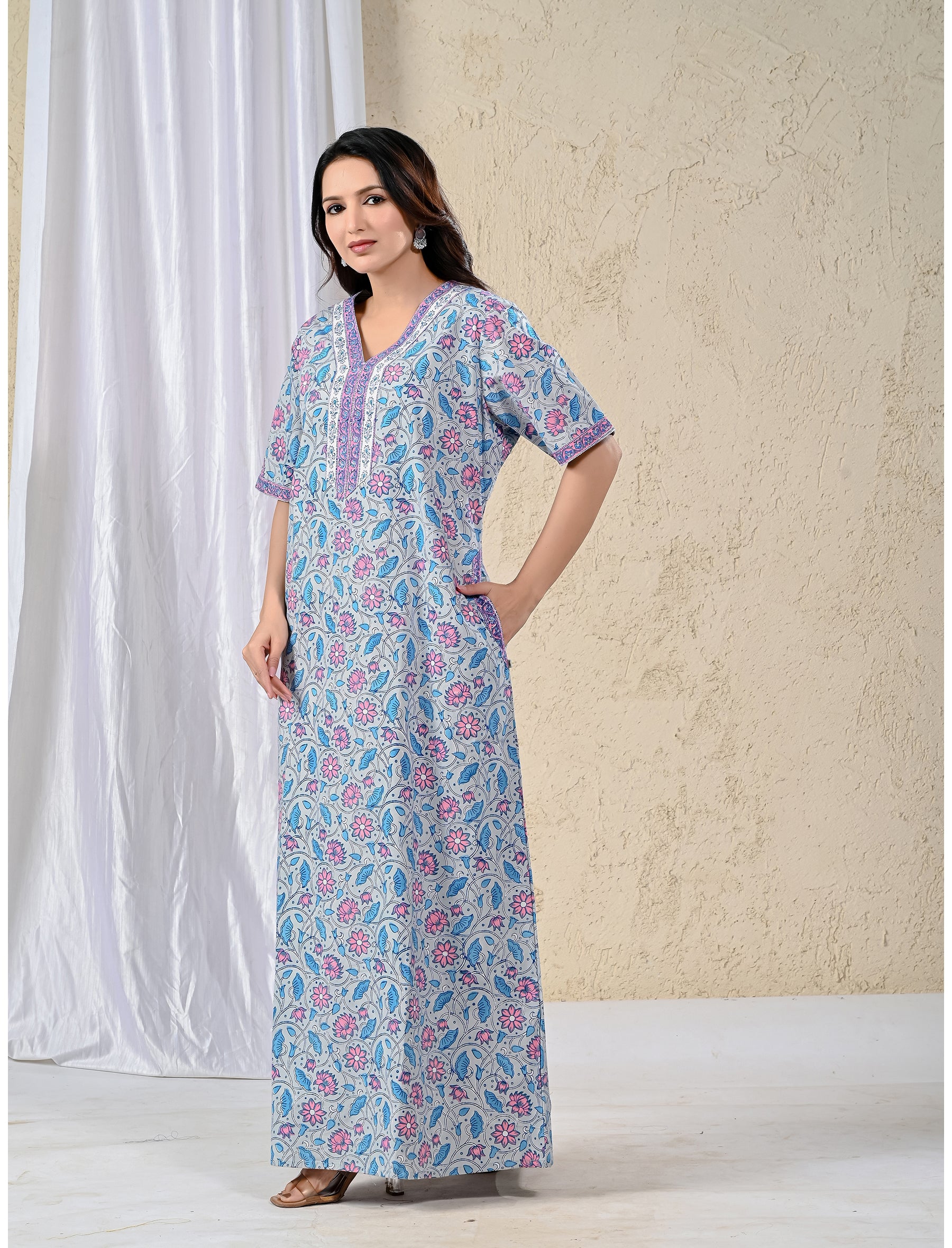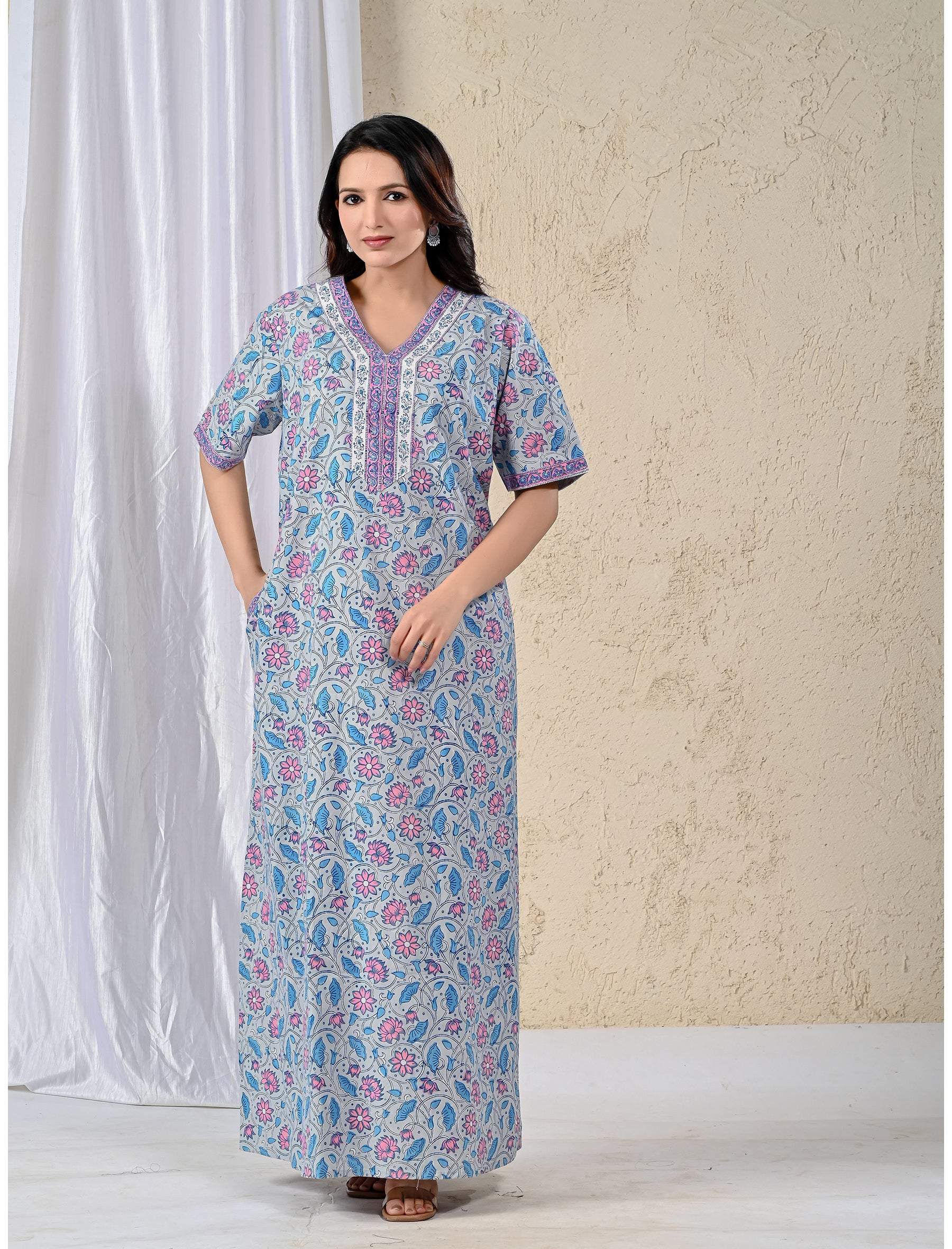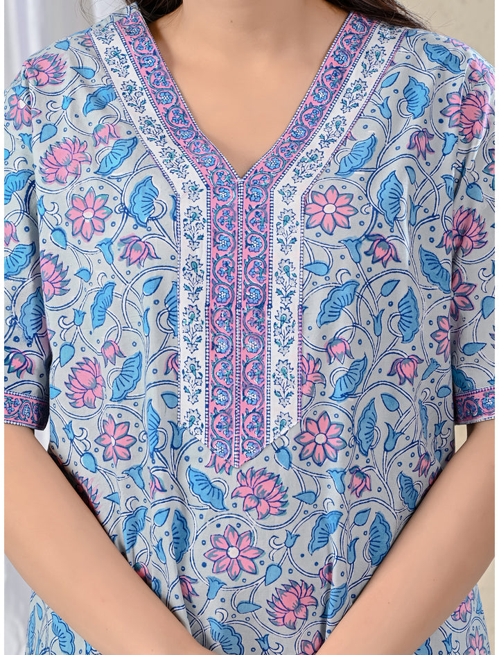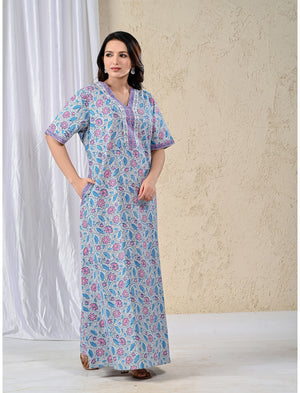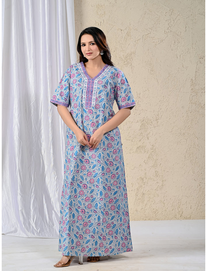 This hand block printed night is made of best quality cotton fabric with immersive prints and fancy designs.