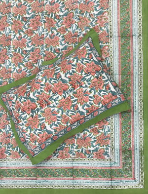 This hand block printed double bedsheet is presented to you by Gulabchand Prints, A well-known brand in hand block prints from over 9 decades. This exclusively hand stitched bedsheet is made of 100% pure cotton fabric with having hand block printed prints over it. The bedsheet is best suitable for your home decor.