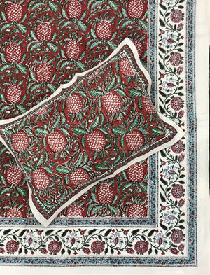 Hand Block Printed Cotton Double Bedsheet With Pillow Covers