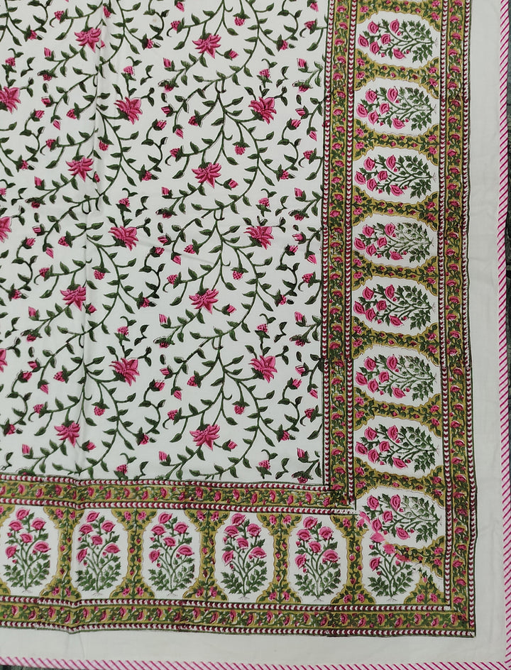 This hand block printed double dohar is presented to you by Gulabchand Prints, A well-known brand in hand block prints from over 9 decades. This exclusively hand stitched dohar is made of 100% pure cotton fabric with having hand block printed prints over it.