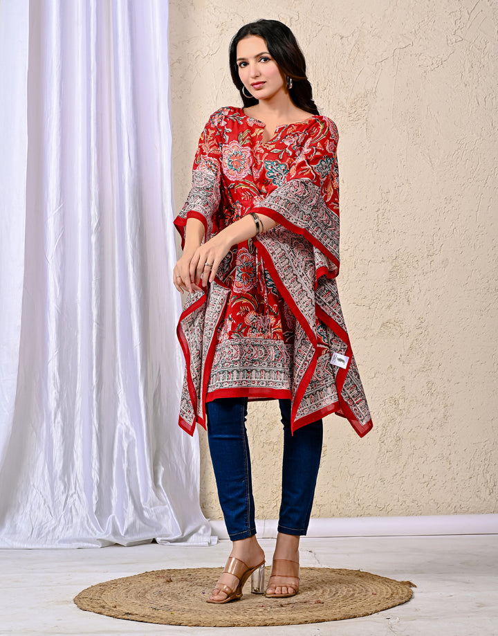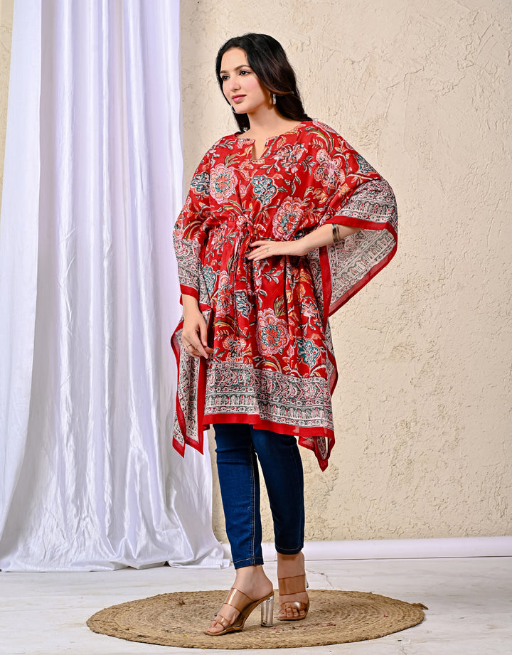 Get comfy in this block printed cotton kaftan for women. This printed kaftan is made of pure 100% cotton fabric. Amazing prints which will suit you most.