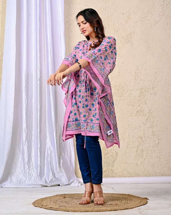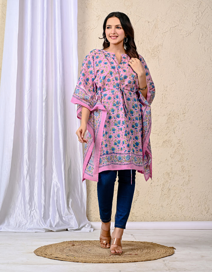 Get comfy in this block printed cotton kaftan for women. This printed kaftan is made of pure 100% cotton fabric. Amazing prints which will suit you most.