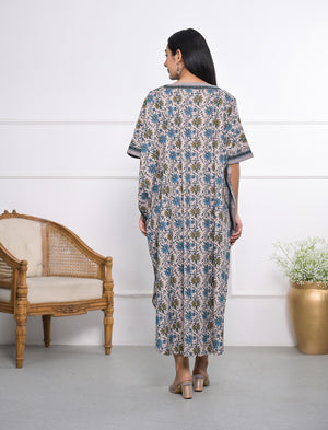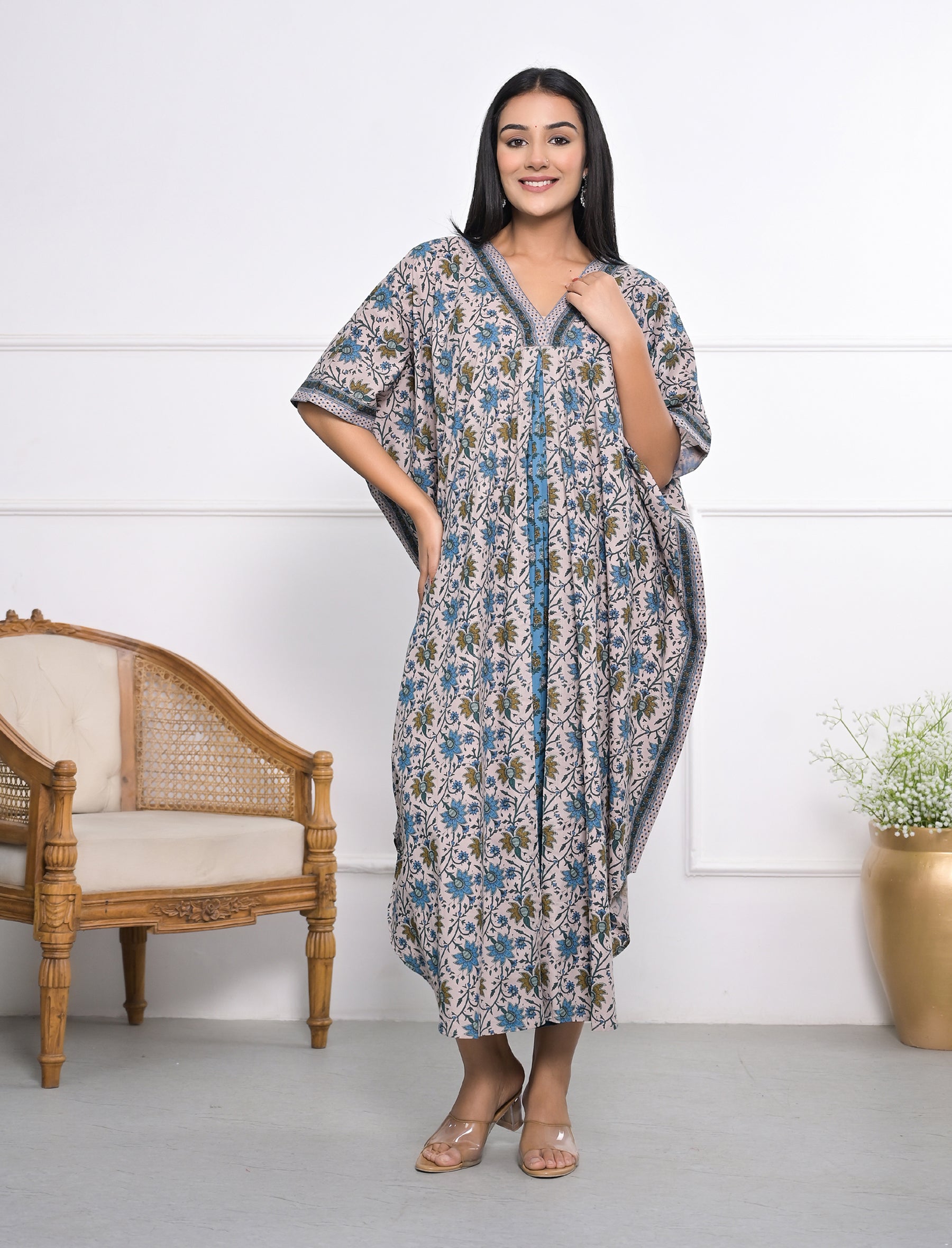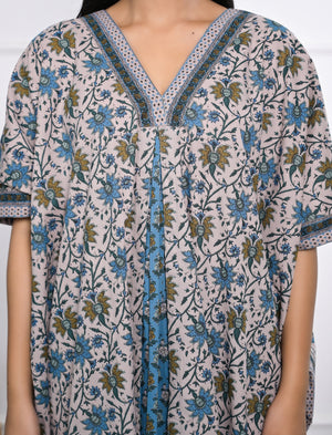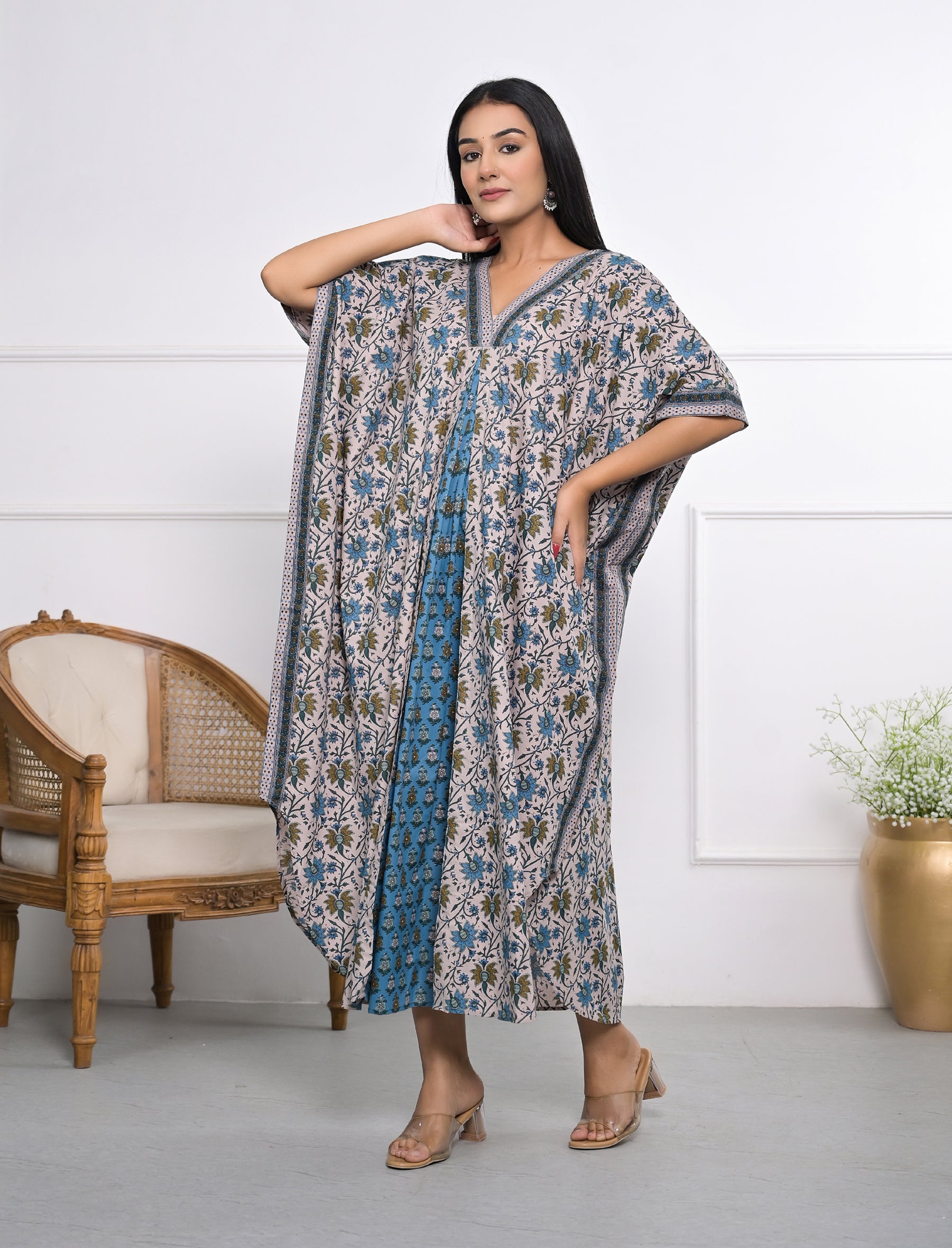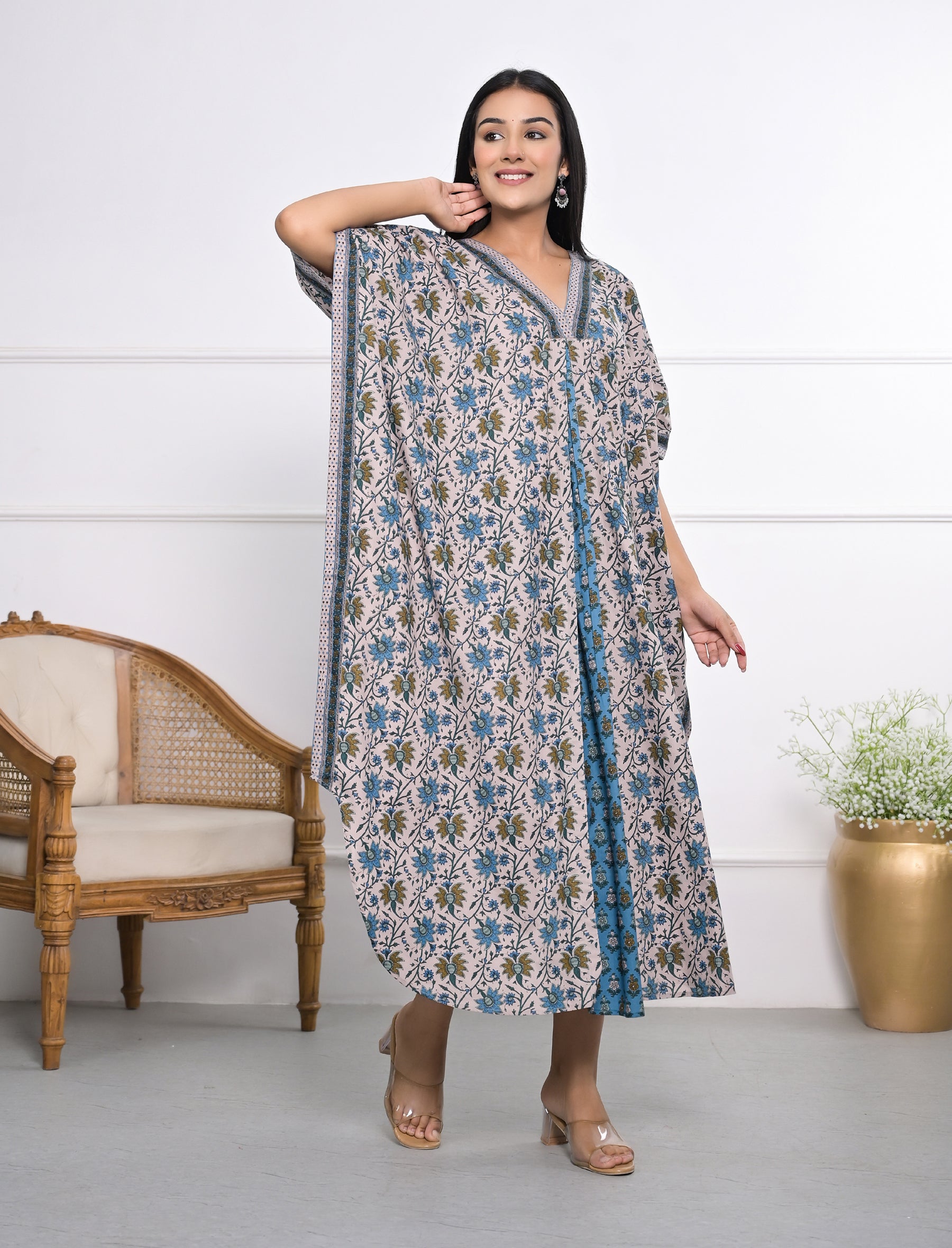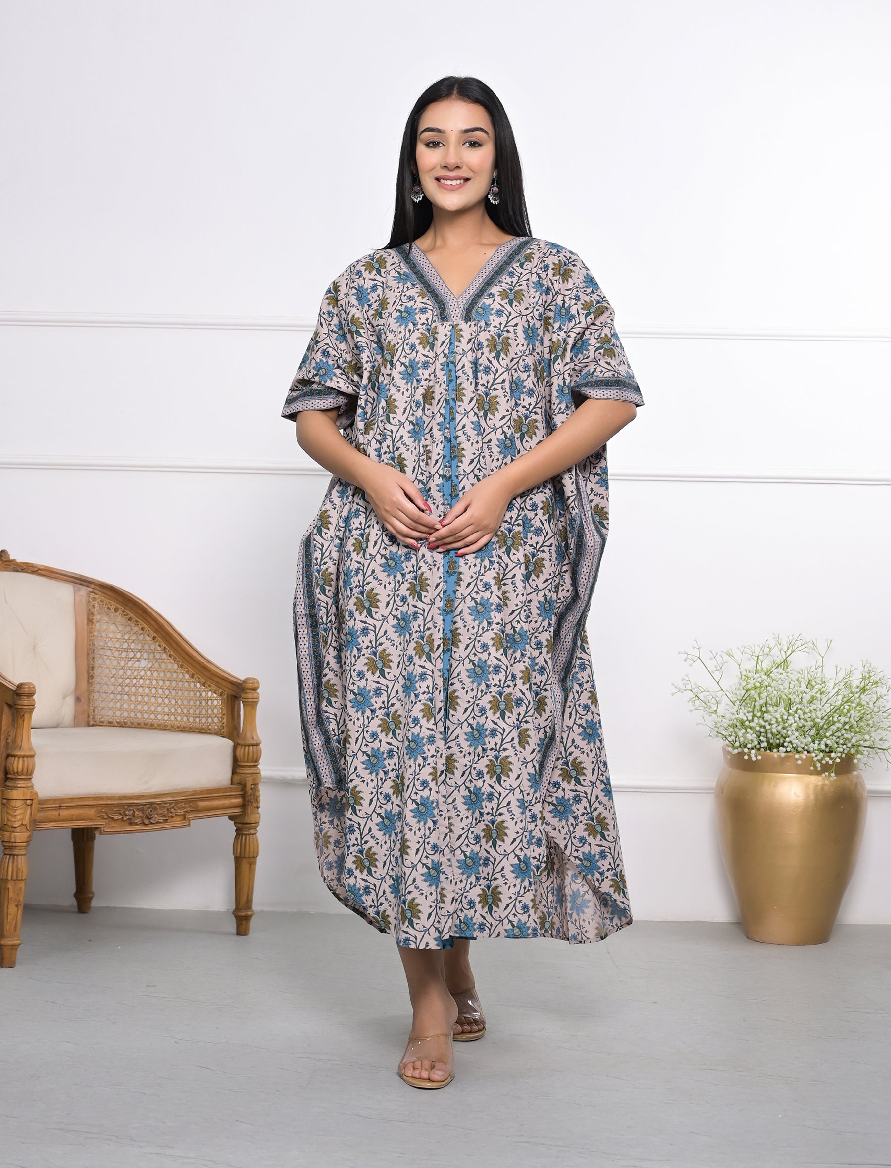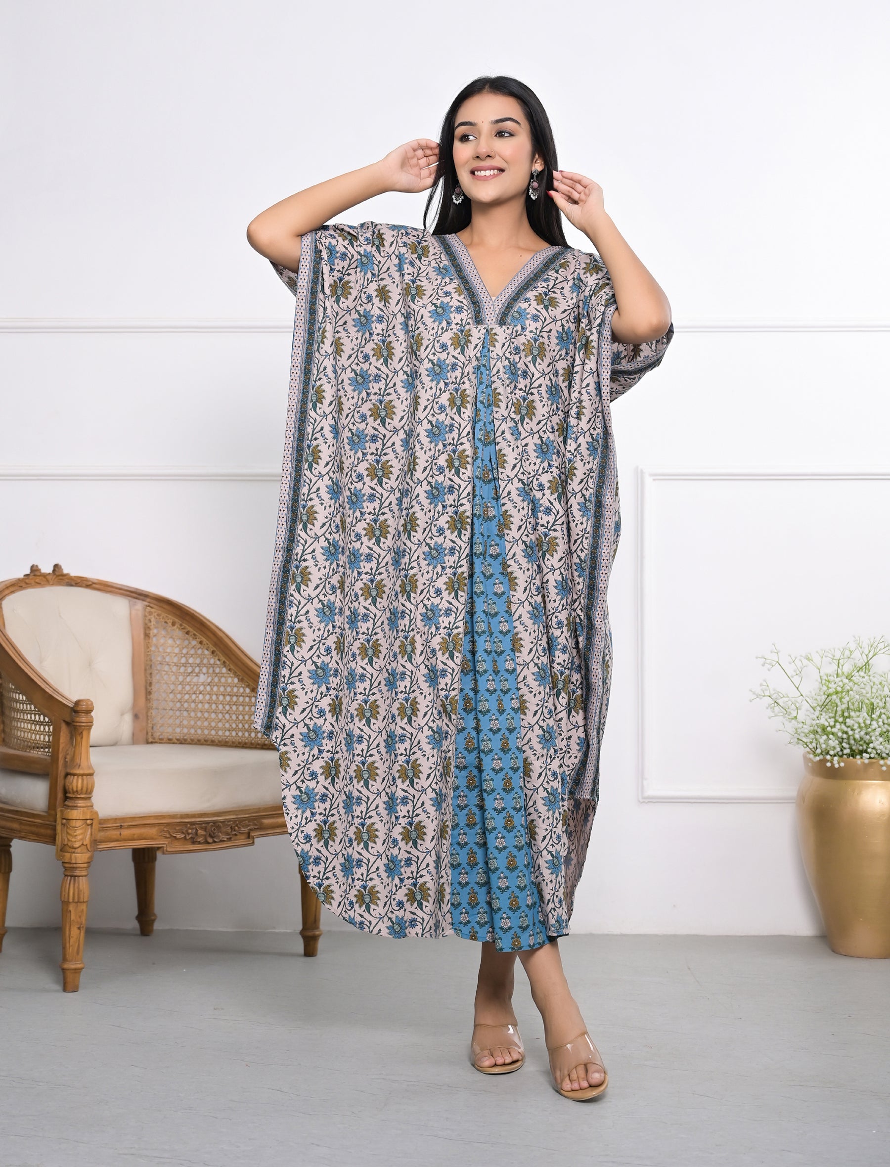 Get comfy in this block printed cotton kaftan for womens. This printed kaftan is made of pure 100% cotton fabric. Amazing prints which will suit you most.