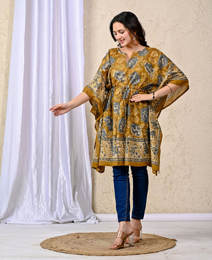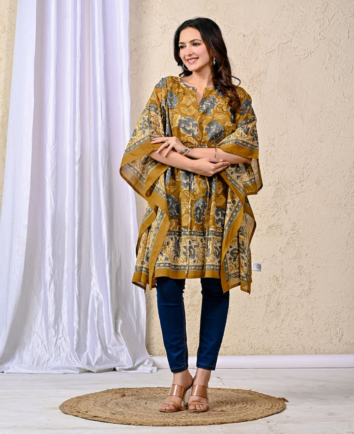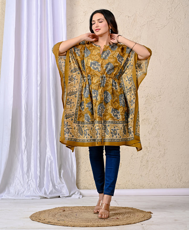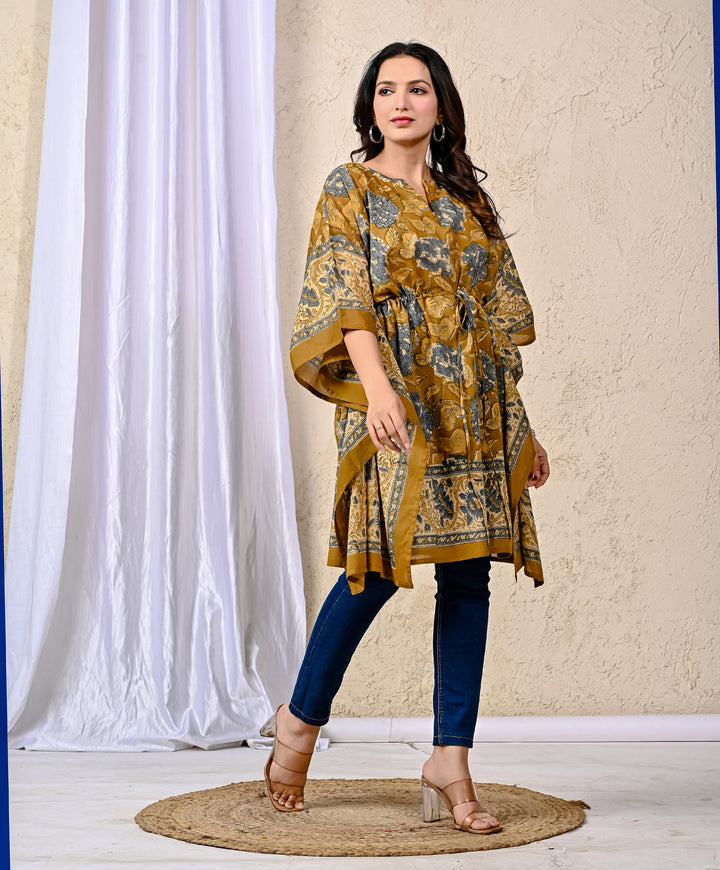 Get comfy in this block printed cotton kaftan for women. This printed kaftan is made of pure 100% cotton fabric. Amazing prints which will suit you most.