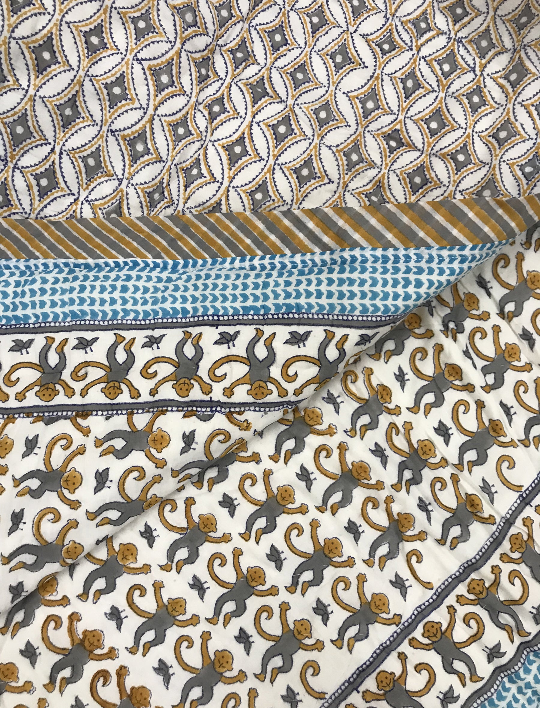 Expertly crafted for kids, this Hand Block Printed Cotton Quilt is a must-have for any child's bed. Made with 100% cotton, it provides a soft and comfortable sleep while adding a touch of style with its hand-blocked print. Perfect for a good night's sleep, without compromising on quality.