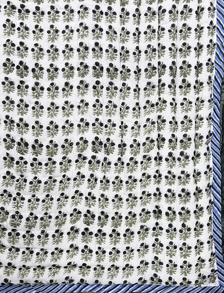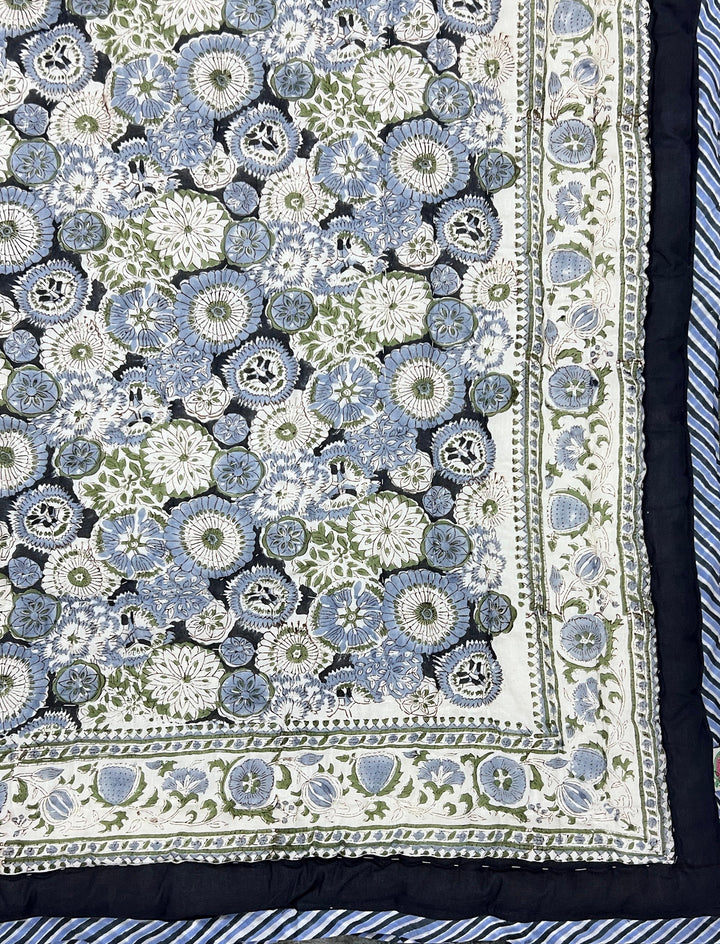 This hand block printed single quilt is presented to you by Gulabchand Prints, A well-known brand in hand block prints from over 9 decades. This exclusively hand stitched dohar is made of 100% pure cotton fabric with having hand block printed prints over it.