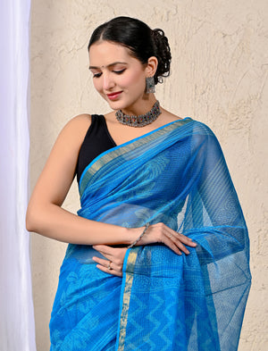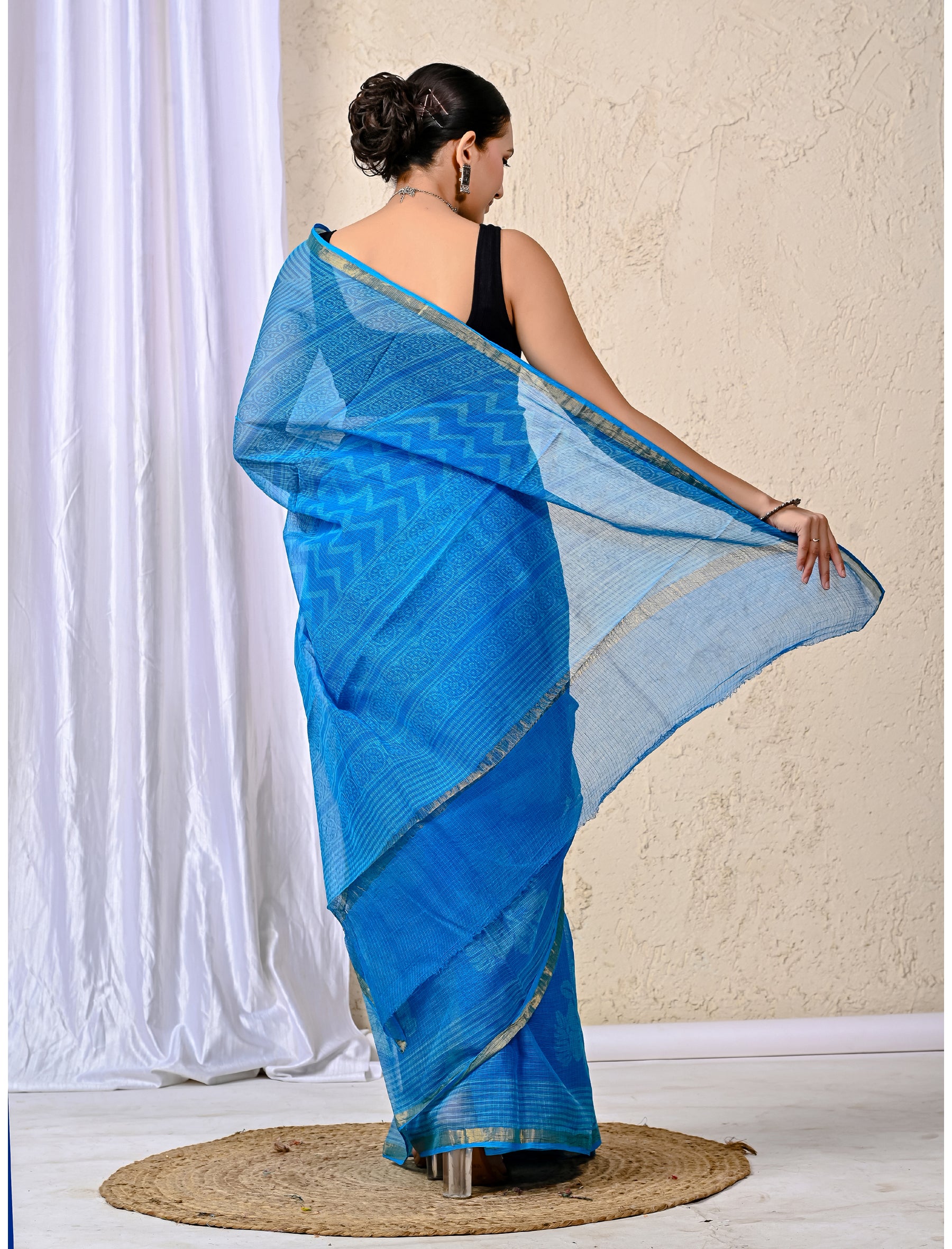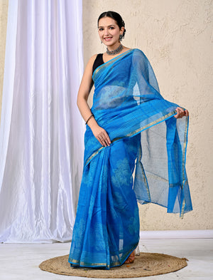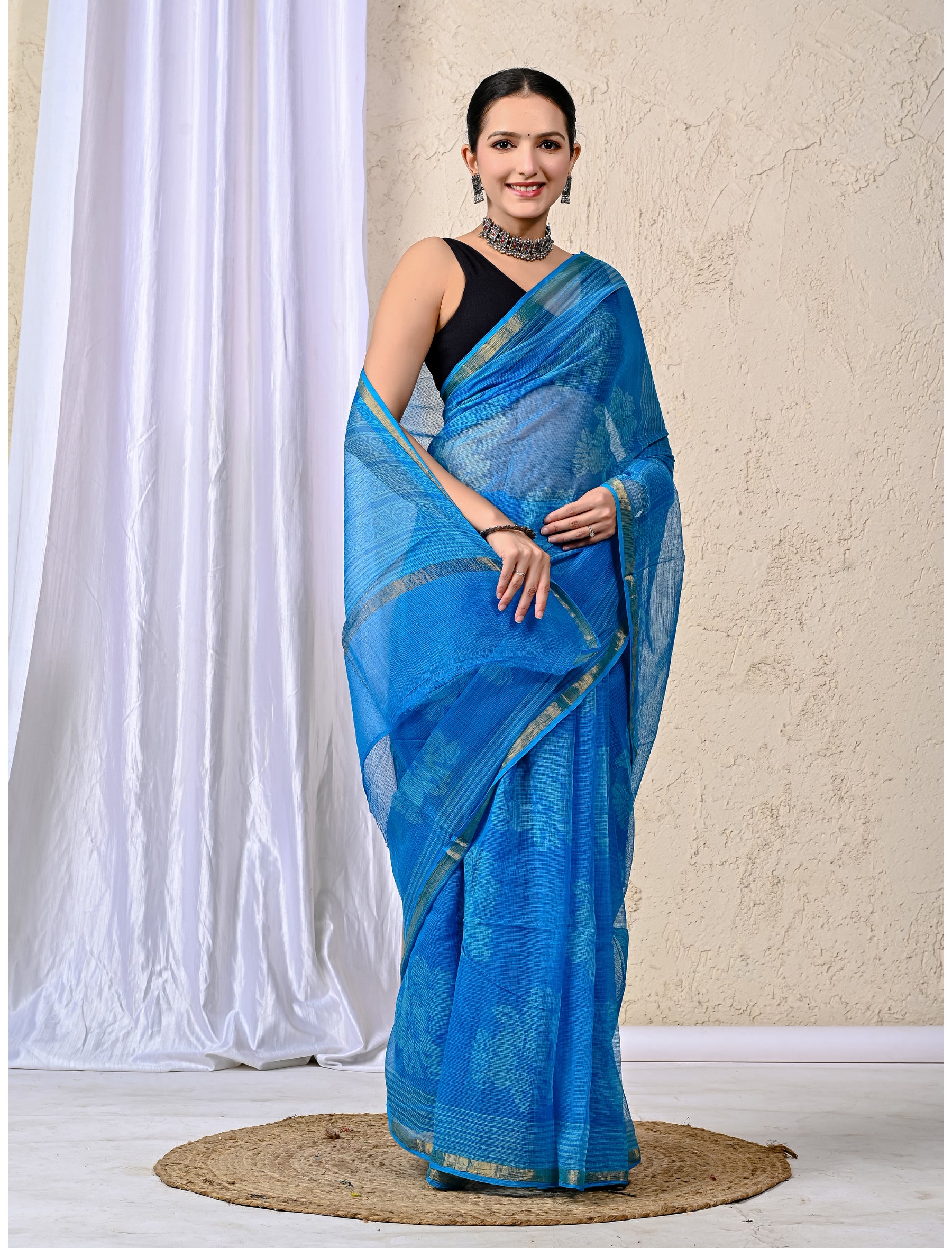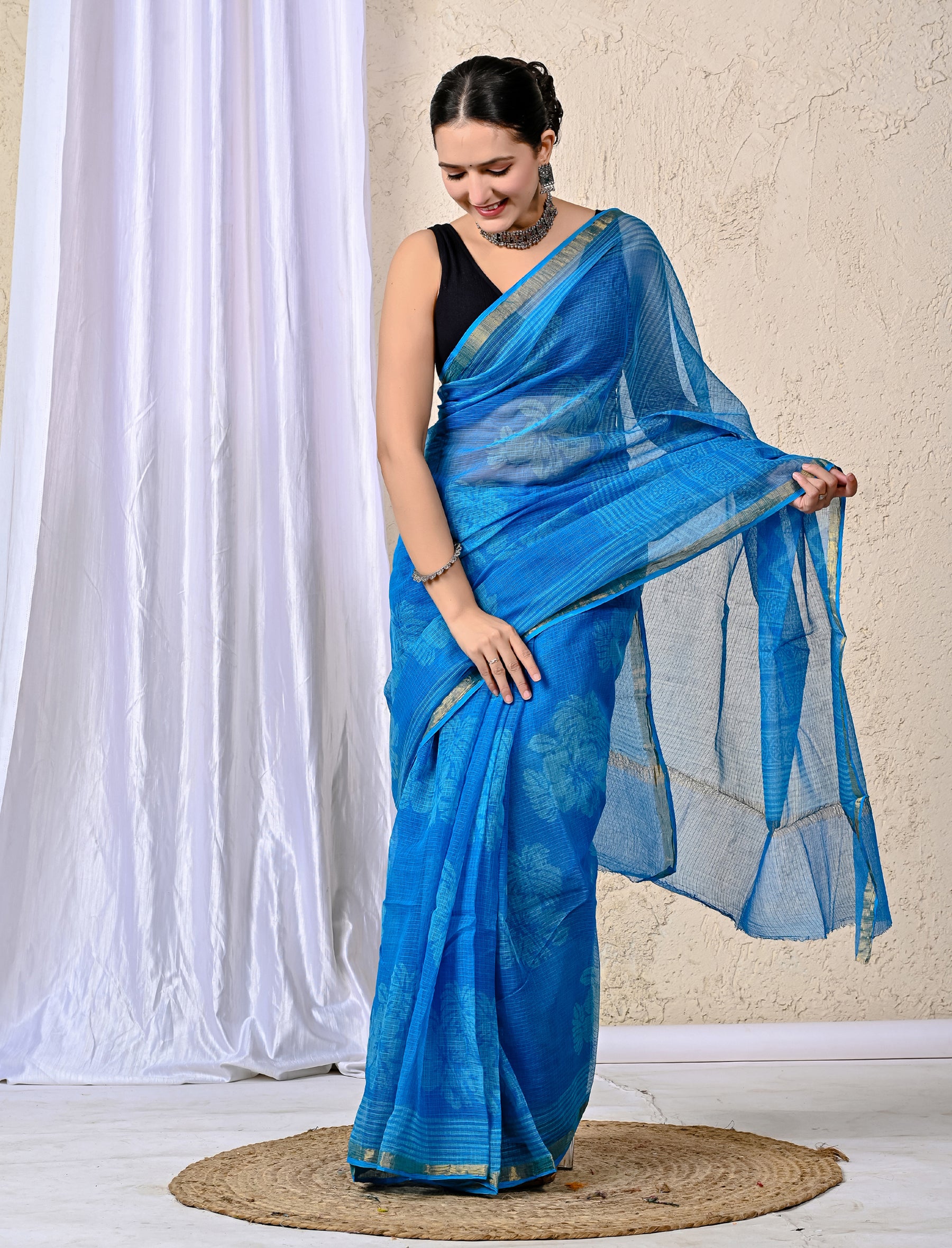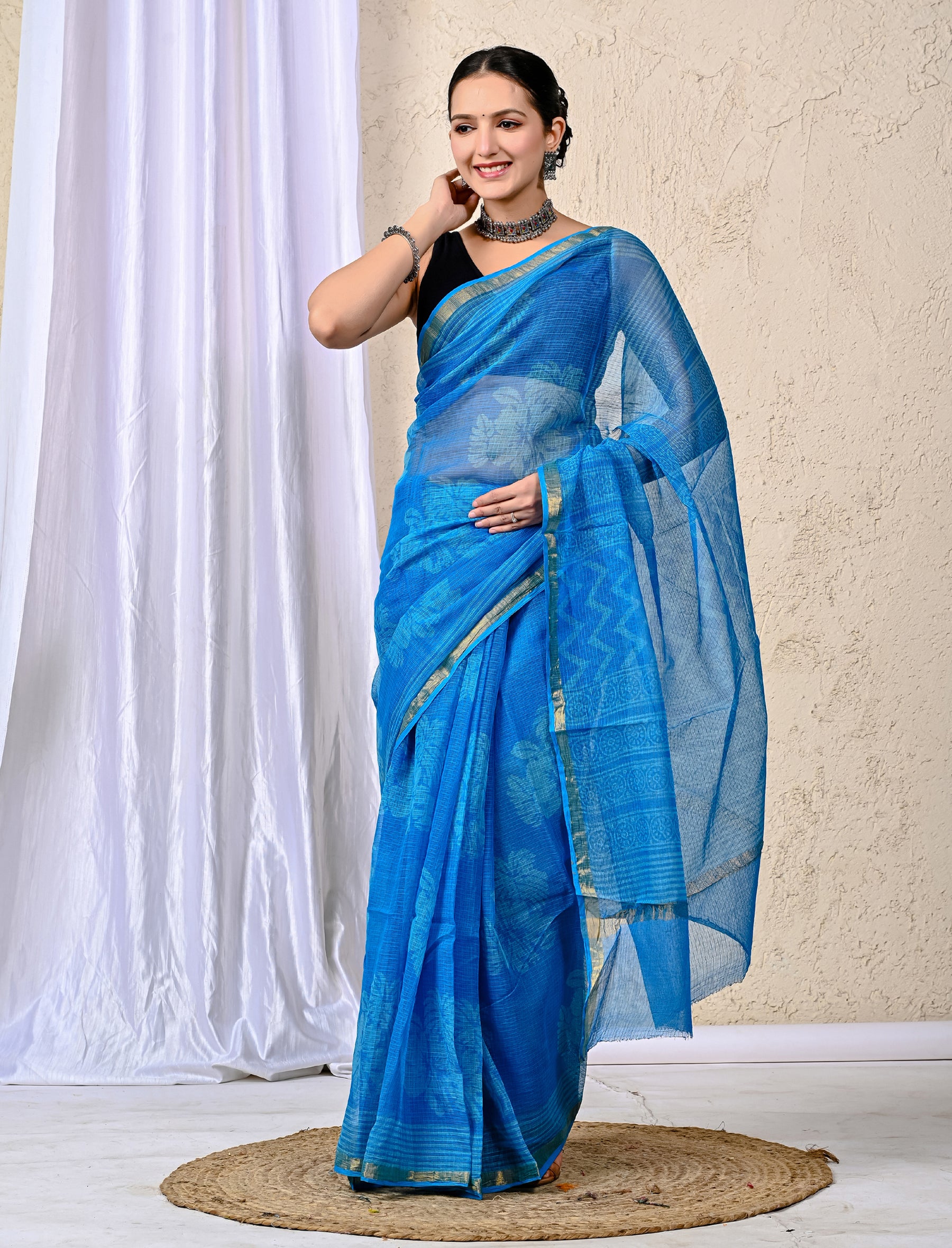 This printed saree is presented to you by Gulabchand Prints, A well-known brand in hand block prints from over 9 decades. This exclusively saree is made of 100% kota doriya fabric with having printed prints over it. Attached with a blouse, this saree can be your perfect for your saree needs.