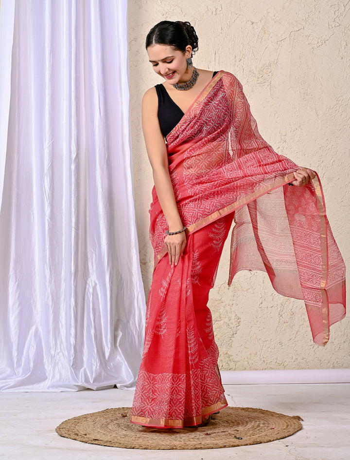 This printed saree is presented to you by Gulabchand Prints, A well-known brand in hand block prints from over 9 decades. This exclusively saree is made of 100% kota doriya fabric with having printed prints over it. Attached with a blouse, this saree can be your perfect for your saree needs.