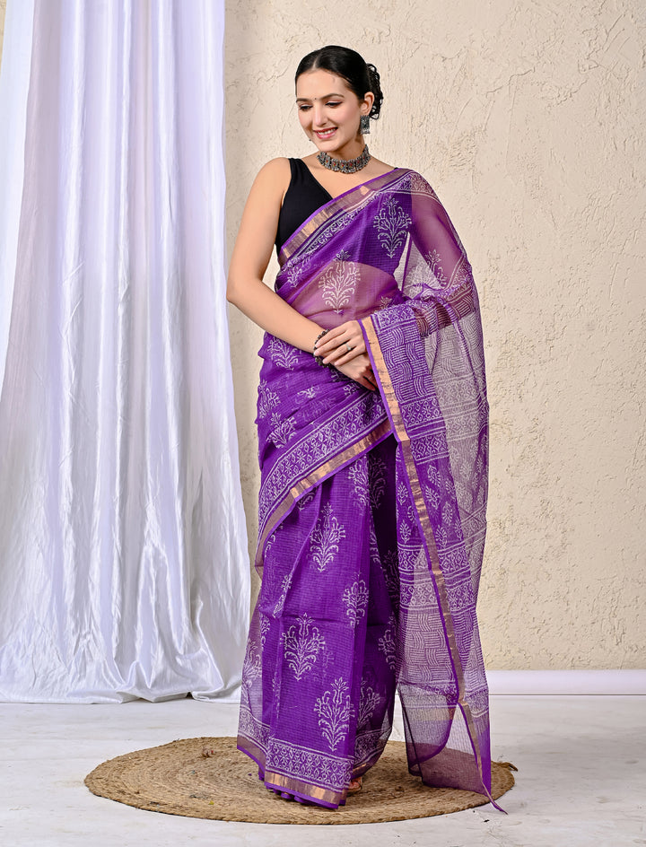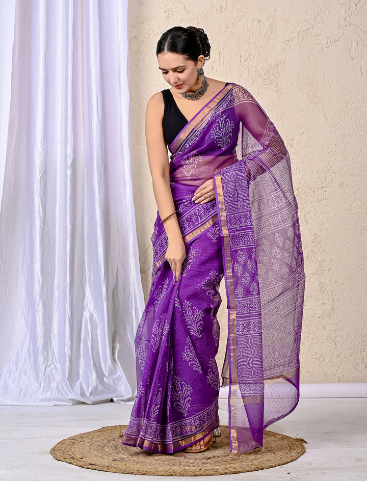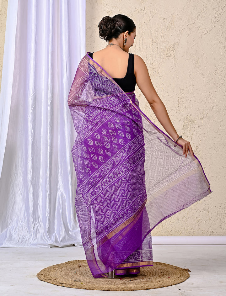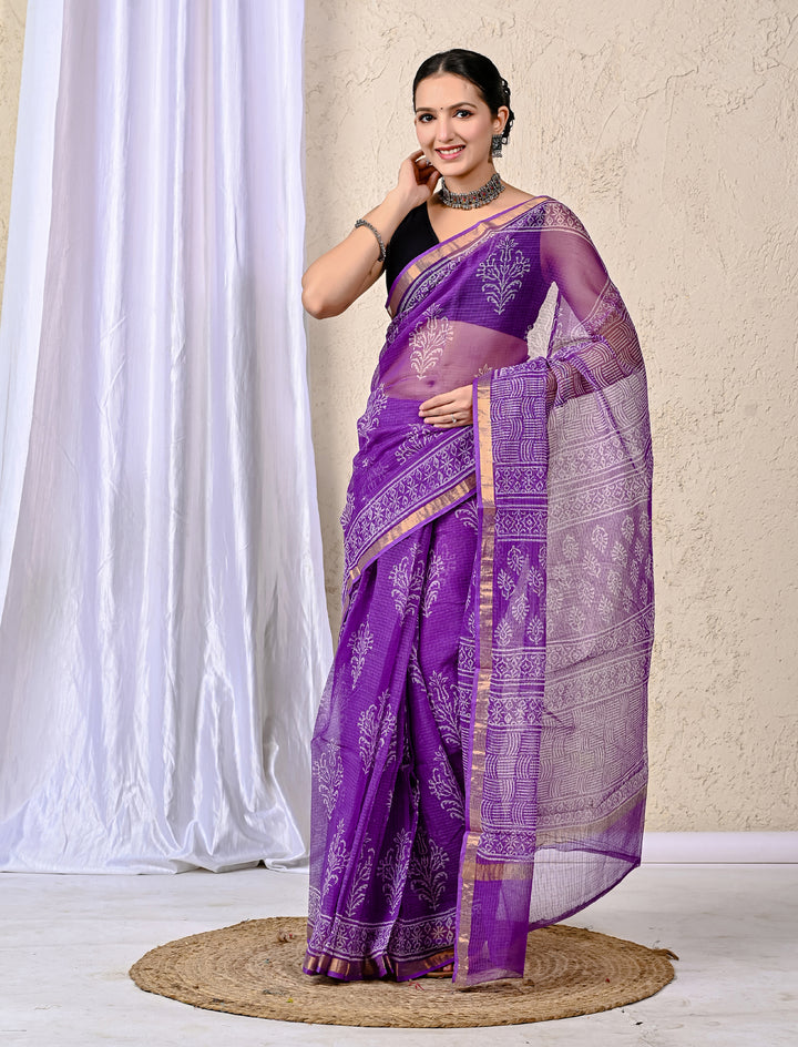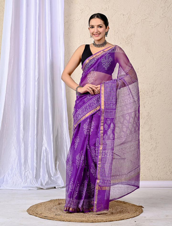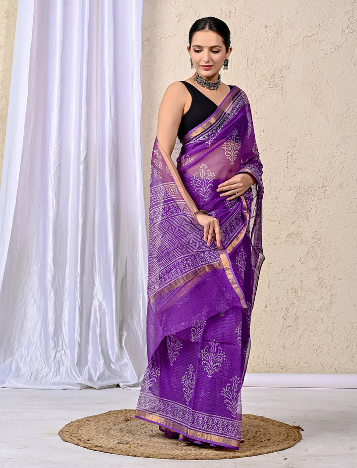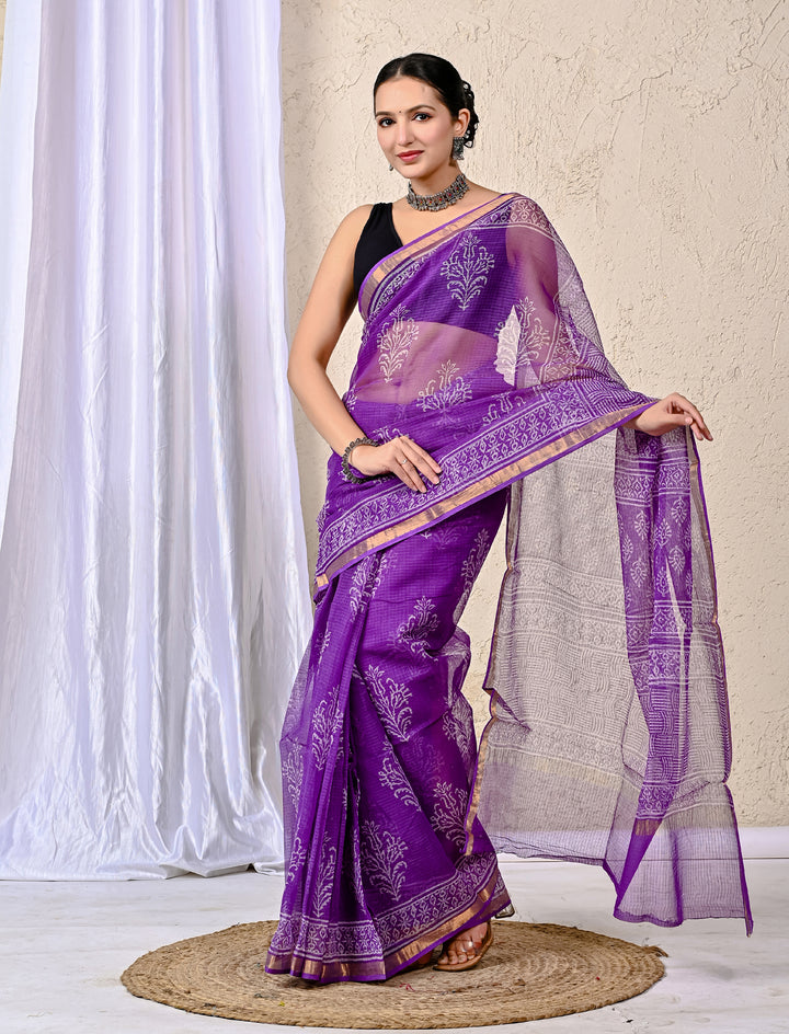 This printed saree is presented to you by Gulabchand Prints, A well-known brand in hand block prints from over 9 decades. This exclusively saree is made of 100% kota doriya fabric with having printed prints over it. Attached with a blouse, this saree can be your perfect for your saree needs.