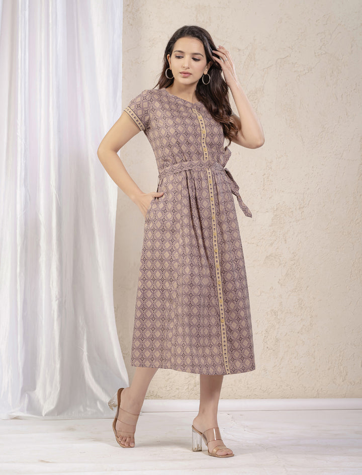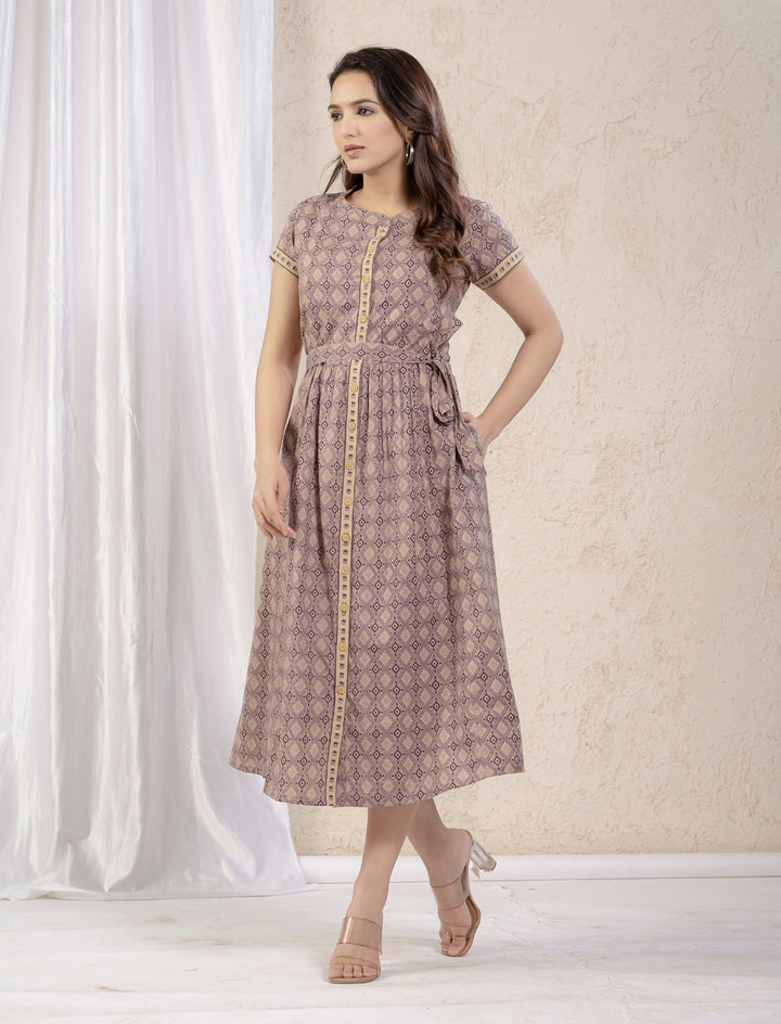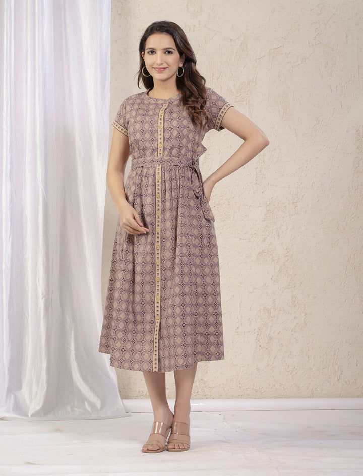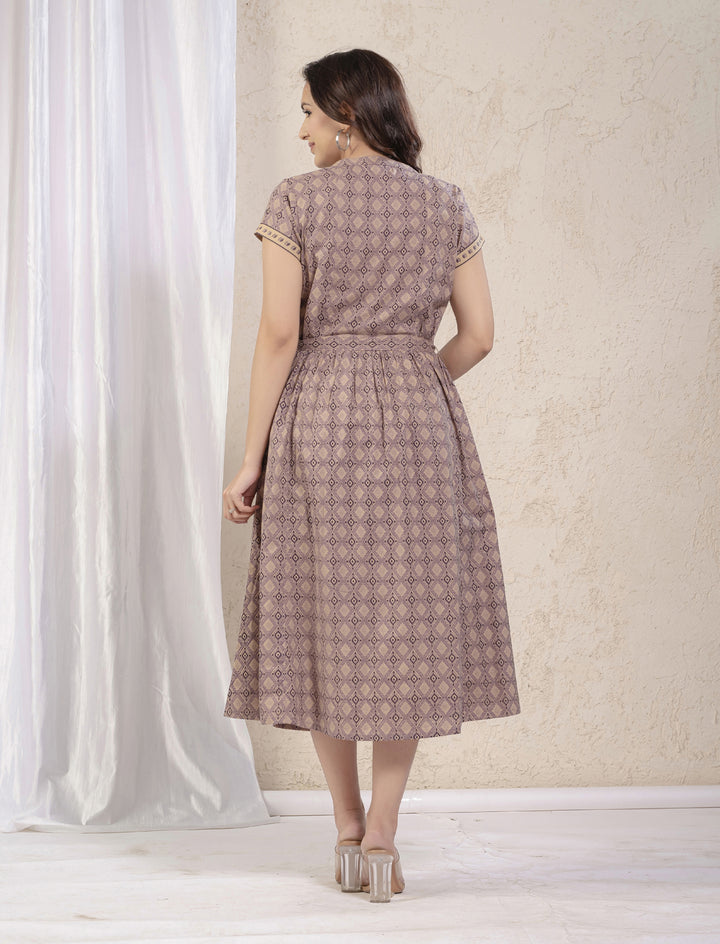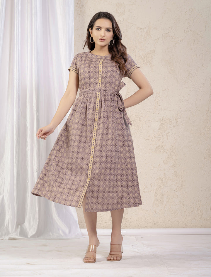 This printed ethnic wear dress is presented to you by Gulabchand Prints, A well-known brand in hand block prints from over 9 decades. This exclusively hand stitched dress is made of 100% pure cotton fabric with having printed prints over it. The dress is best suitable for you to showcase your women hood. Wear this at your ease and the fabric is so smooth to skin that you will love it and the attractive prints adds more charm to the same.