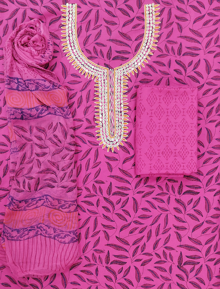 This hand block printed ethnic wear Dress Material is presented to you by Gulabchand Prints, A well-known brand in hand block prints from over 9 decades. This exclusively hand Printed Suit is made of 100% pure Cotton fabric with having hand block printed prints over it. This Dress Material is best suitable for you to showcase your womenhood. Wear this at your ease and the fabric is so smooth to skin that you will love it and the attractive prints adds more charm to the same.