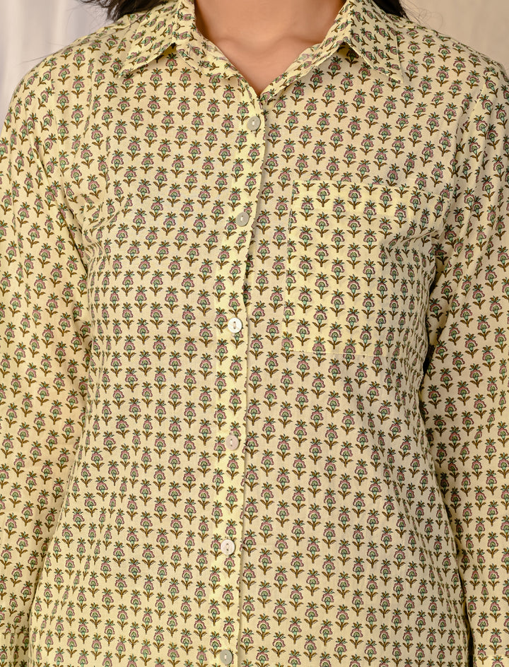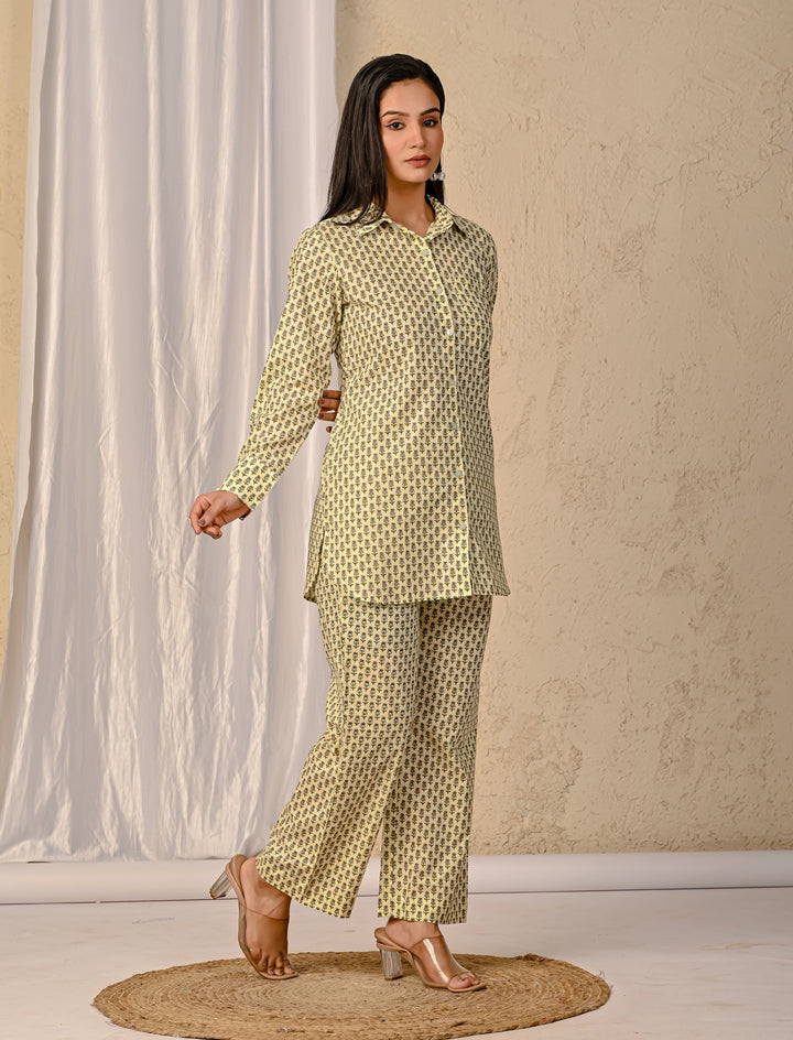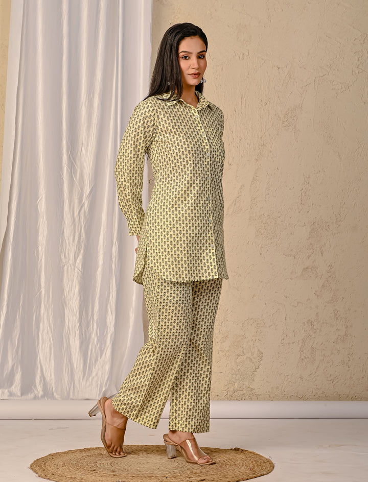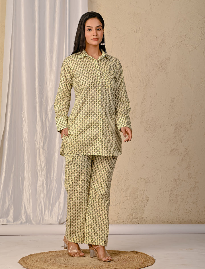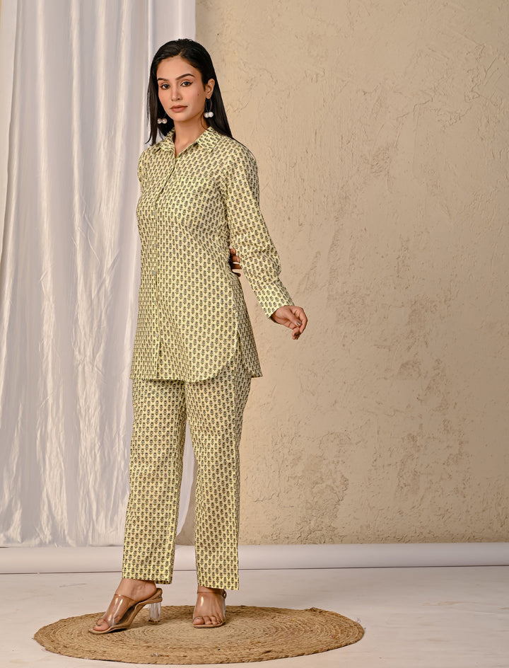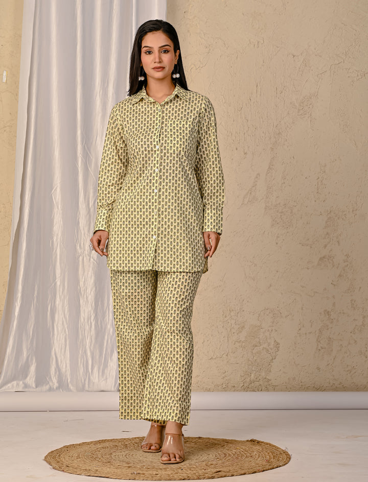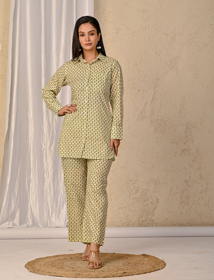 Pastel Green Barik Butti Printed Cotton Co-Ord Set