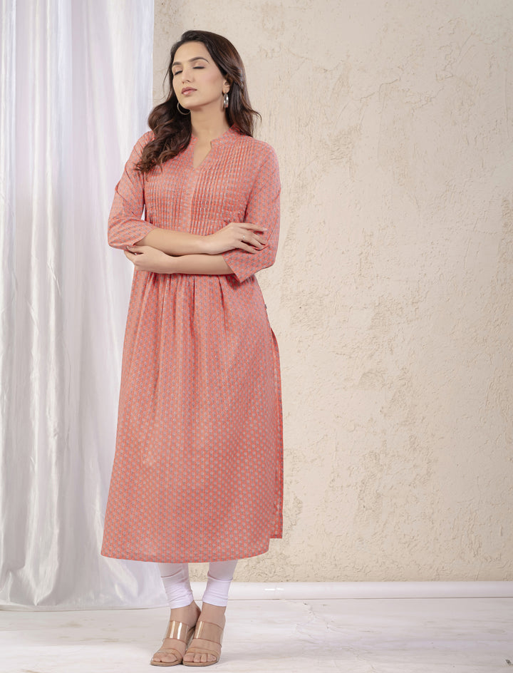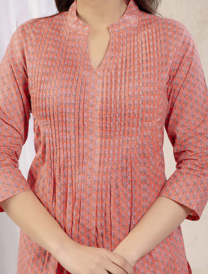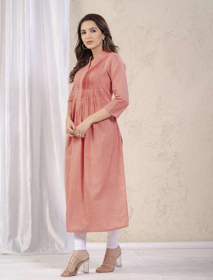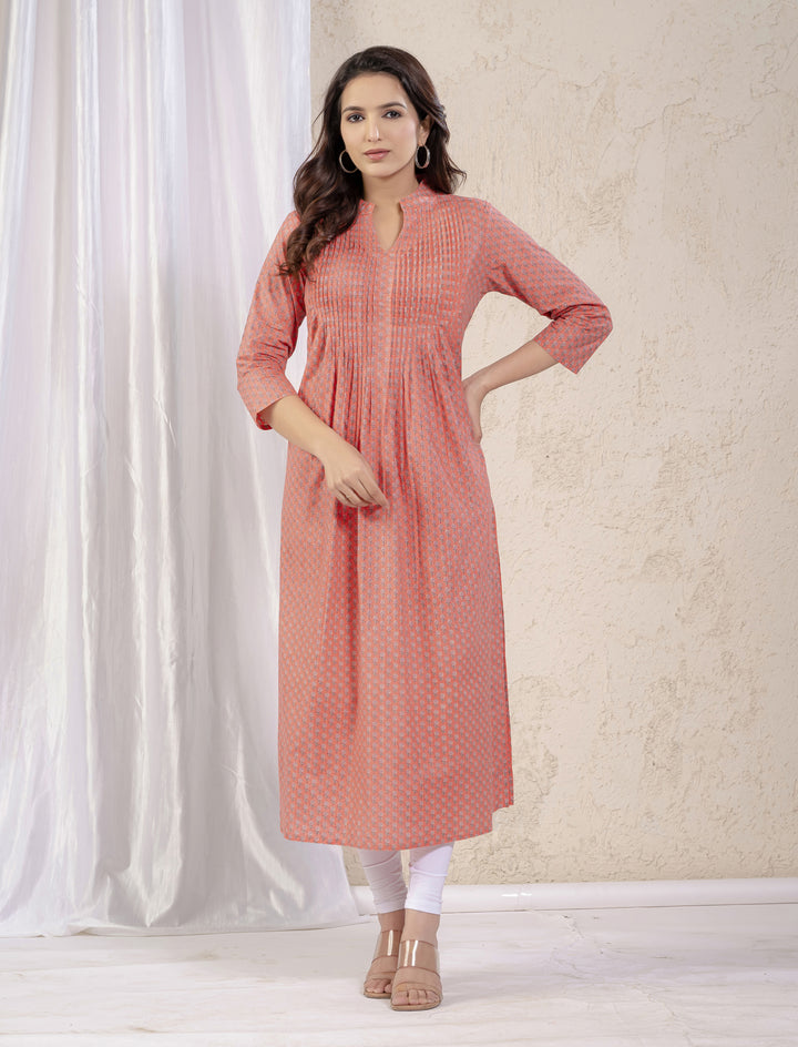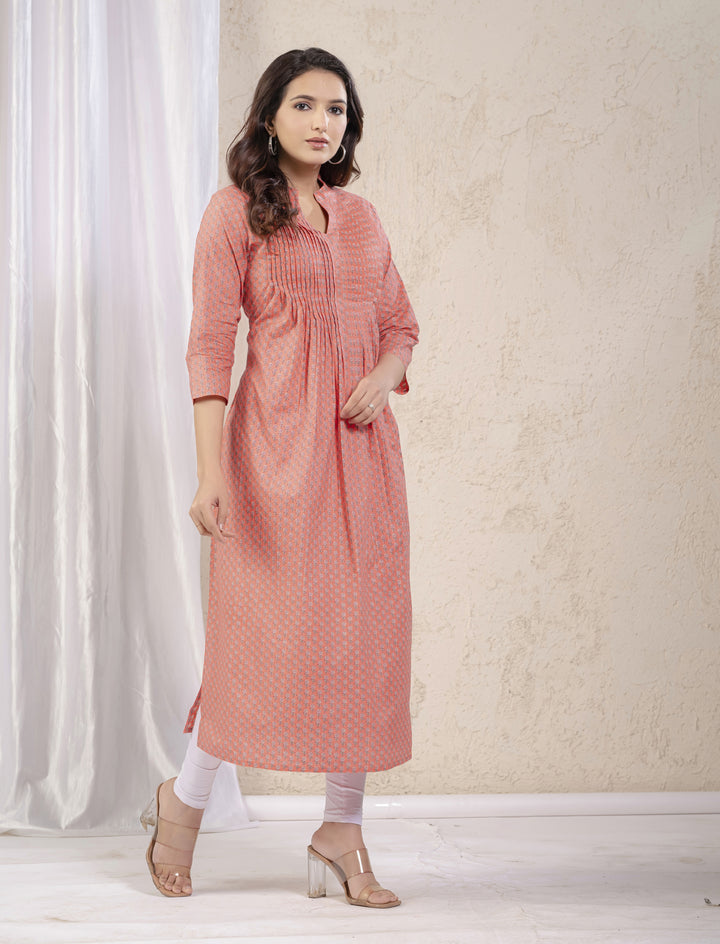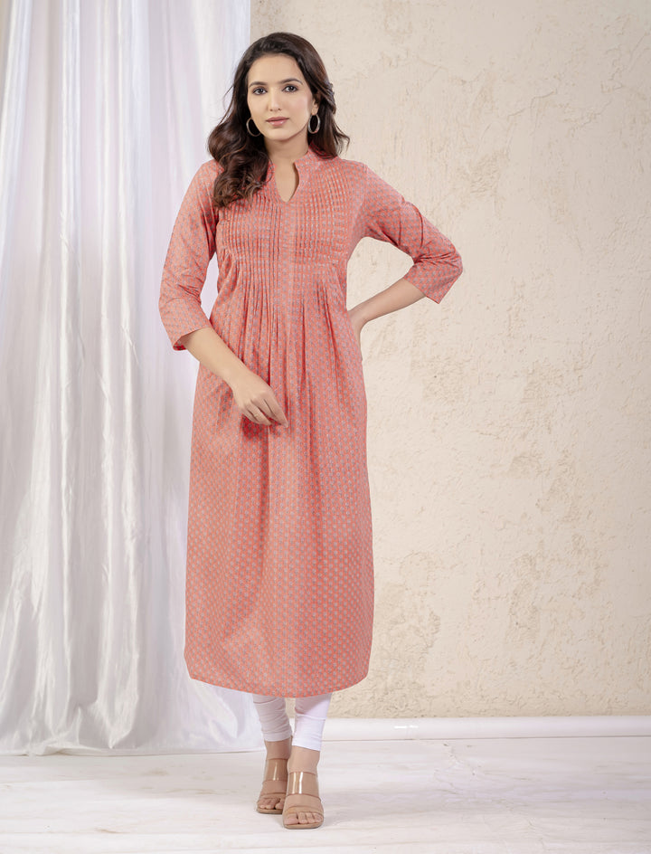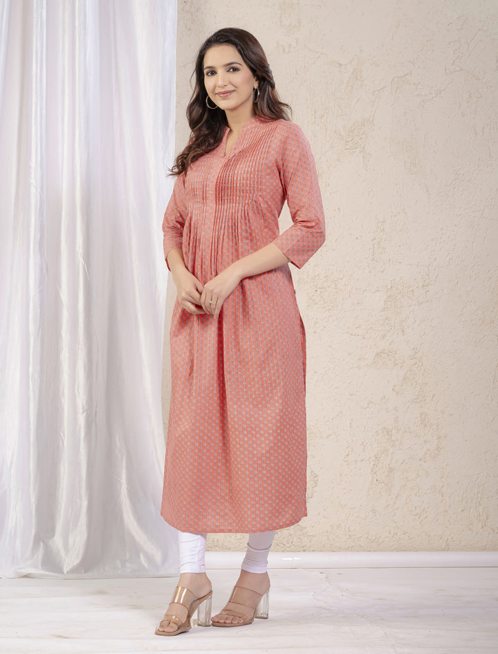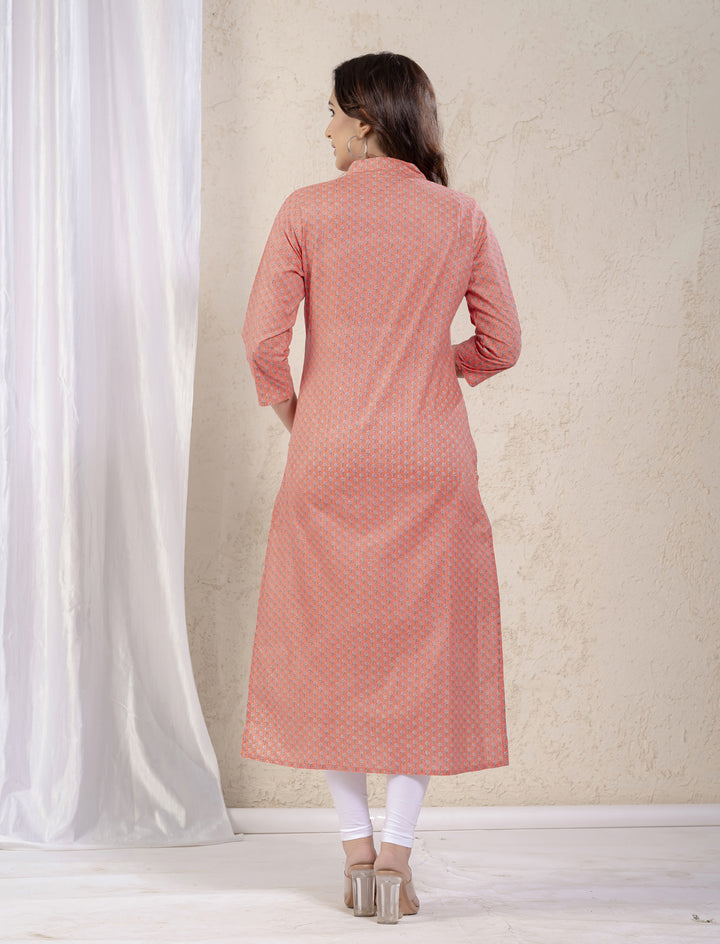 Peach Butti Printed Straight Kurti