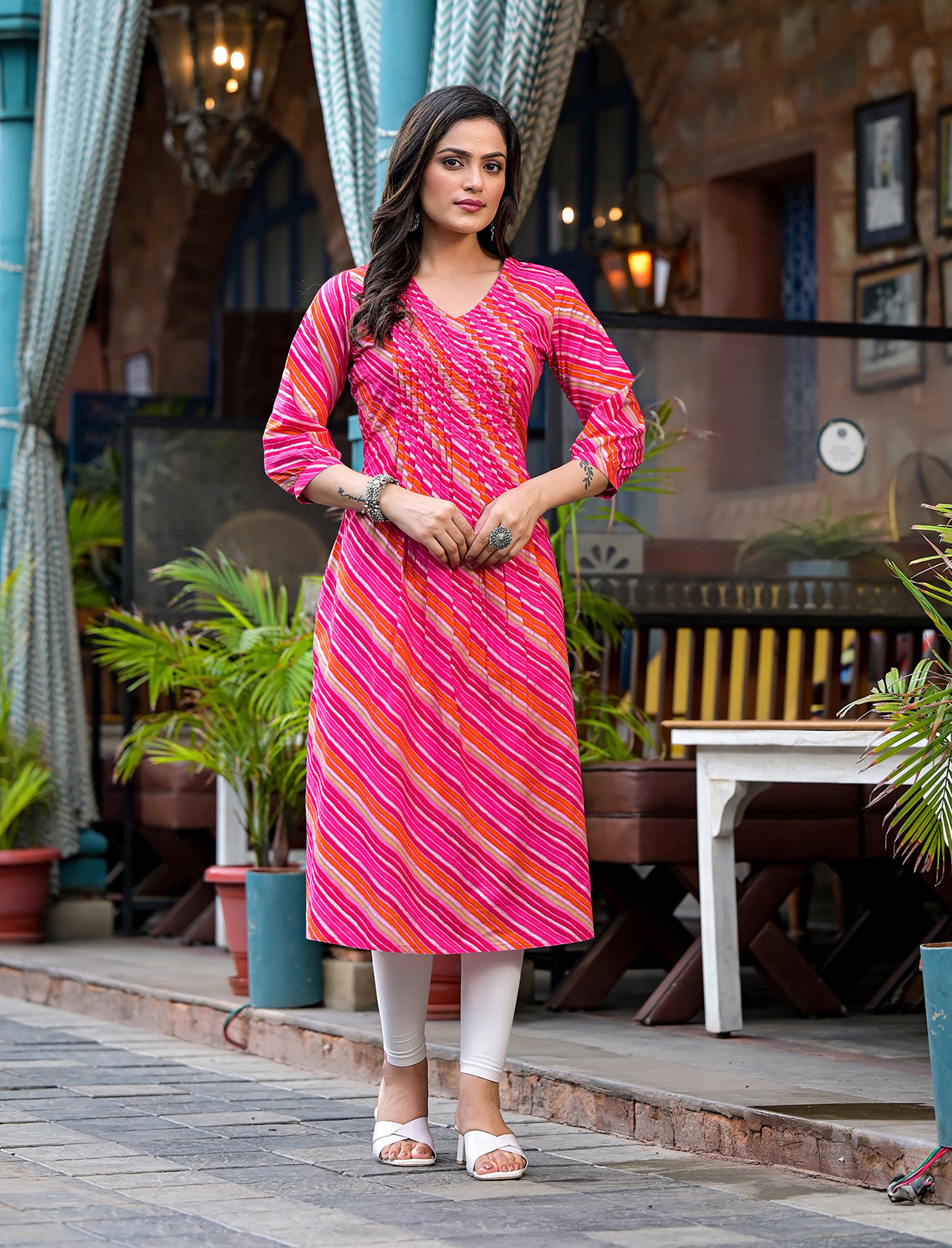 This printed ethnic wear kurti is presented to you by Gulabchand Prints, A well-known brand in hand block prints from over 9 decades. This exclusively hand stitched kurti is made of 100% pure cotton fabric with having printed prints over it. The kurti is best suitable for you to showcase your women hood. Wear this at your ease and the fabric is so smooth to skin that you will love it and the attractive prints adds more charm to the same.