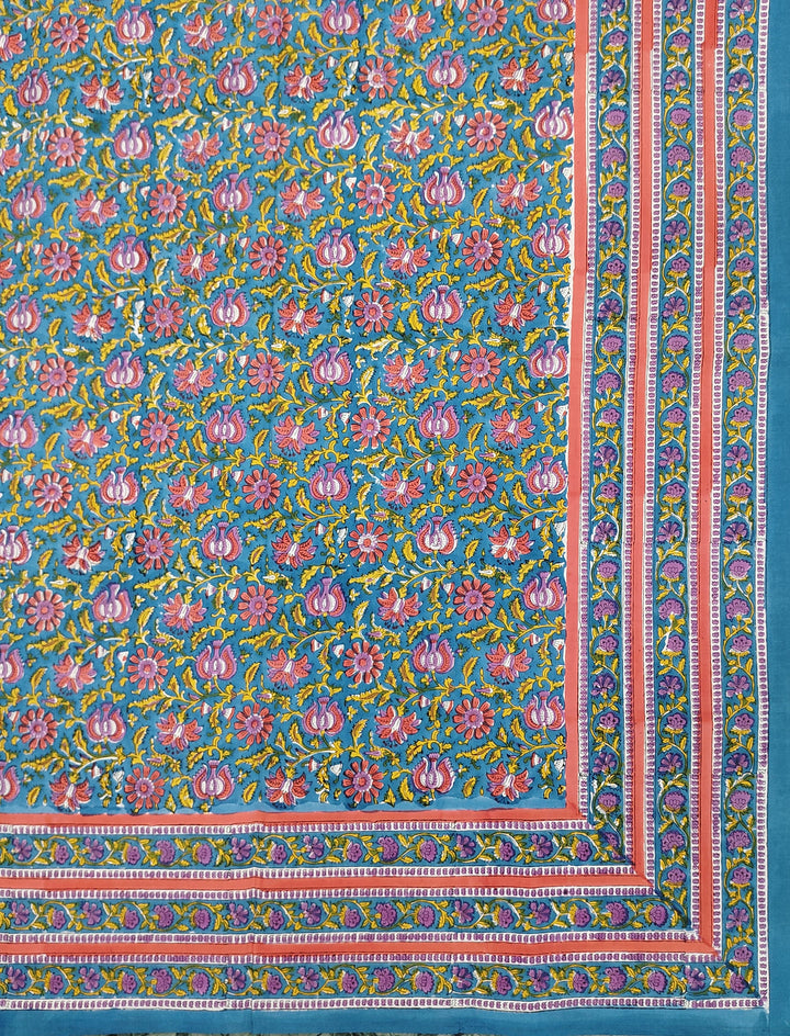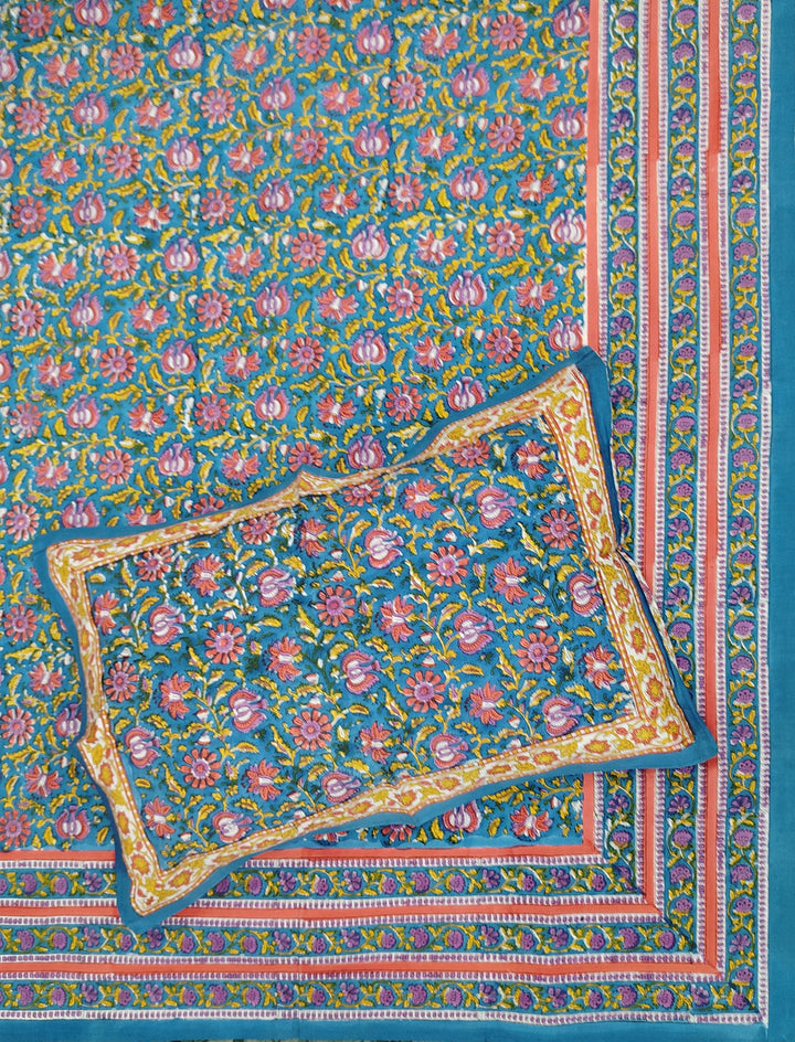 This hand block printed double percale cotton bedsheet is presented to you by Gulabchand Prints, A well-known brand in hand block prints from over 9 decades. This exclusively hand stitched bedsheet is made of 100% pure percale cotton fabric with having hand block printed prints over it. The bedsheet is best suitable for your home decor.