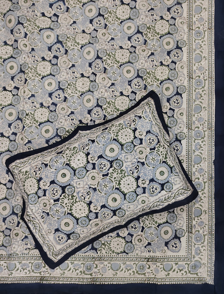This hand block printed double percale cotton bedsheet is presented to you by Gulabchand Prints, A well-known brand in hand block prints from over 9 decades. This exclusively hand stitched bedsheet is made of 100% pure percale cotton fabric with having hand block printed prints over it. The bedsheet is best suitable for your home decor.