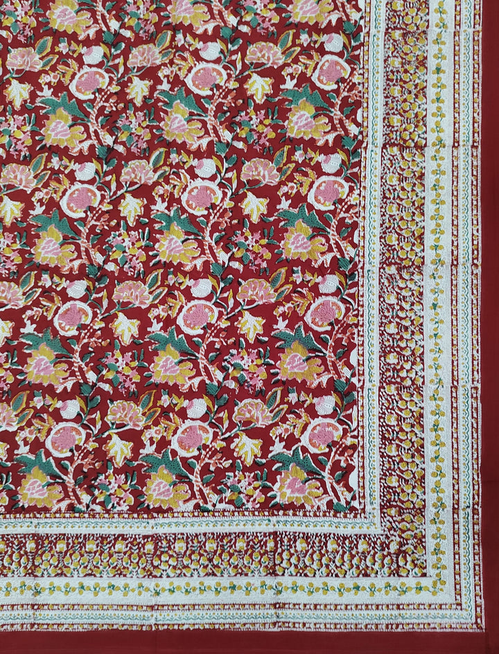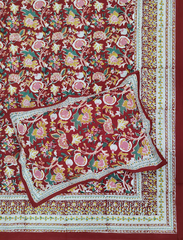 This hand block printed double percale cotton bedsheet is presented to you by Gulabchand Prints, A well-known brand in hand block prints from over 9 decades. This exclusively hand stitched bedsheet is made of 100% pure percale cotton fabric with having hand block printed prints over it. The bedsheet is best suitable for your home decor.