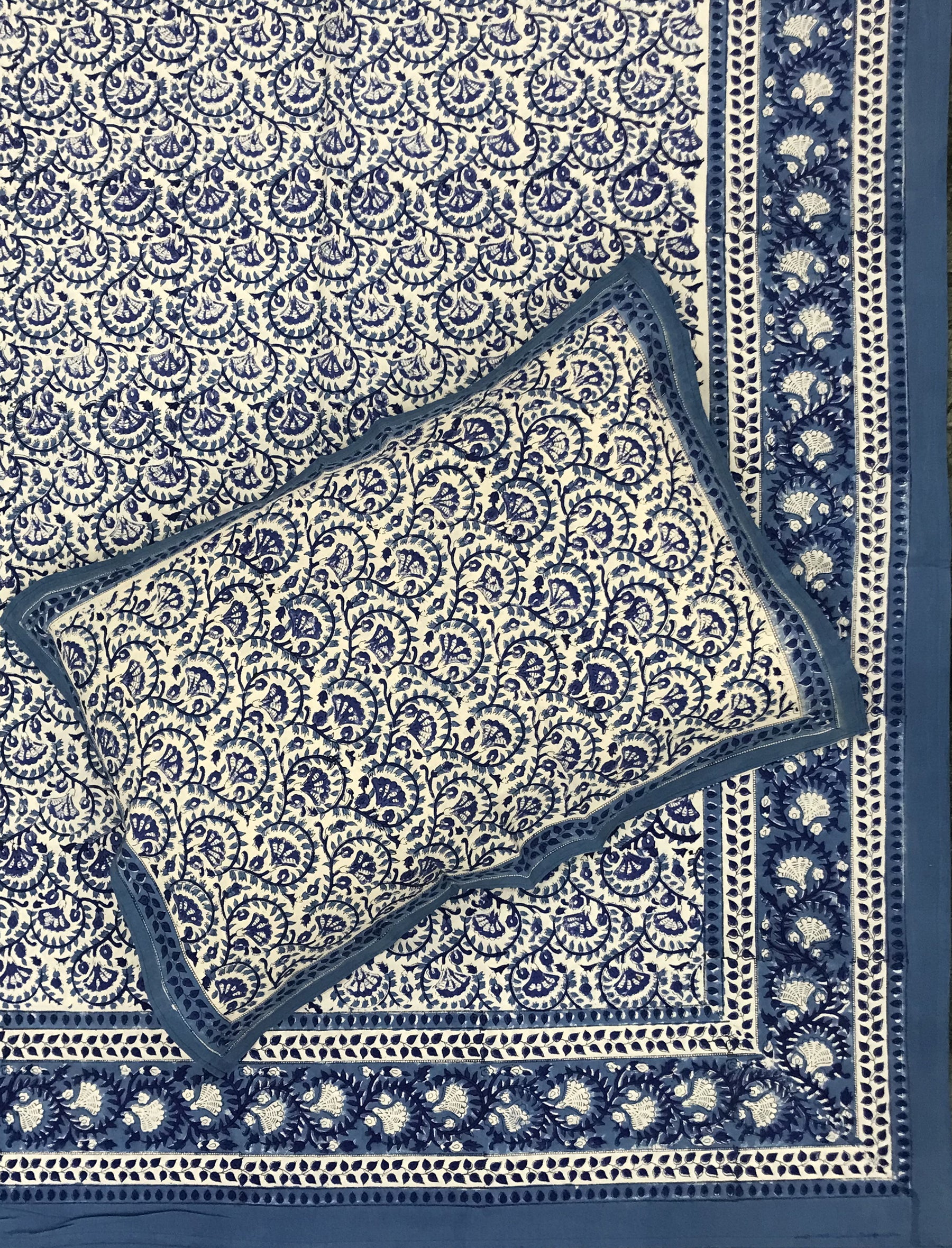 This hand block printed double percale cotton bedsheet is presented to you by Gulabchand Prints, A well-known brand in hand block prints from over 9 decades. This exclusively hand stitched bedsheet is made of 100% pure percale cotton fabric with having hand block printed prints over it. The bedsheet is best suitable for your home decor.