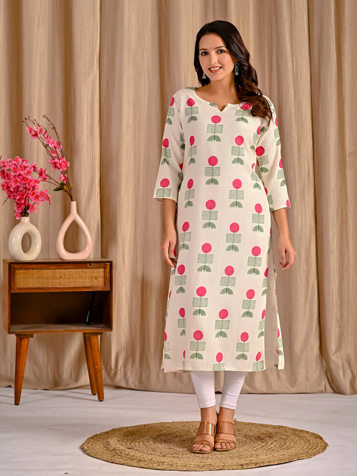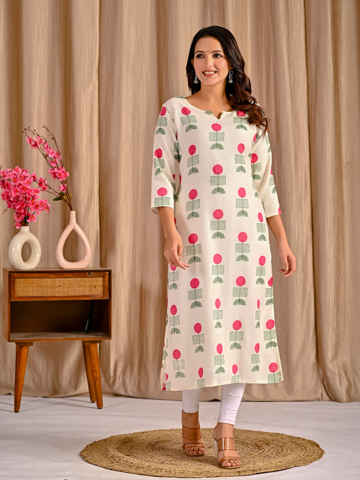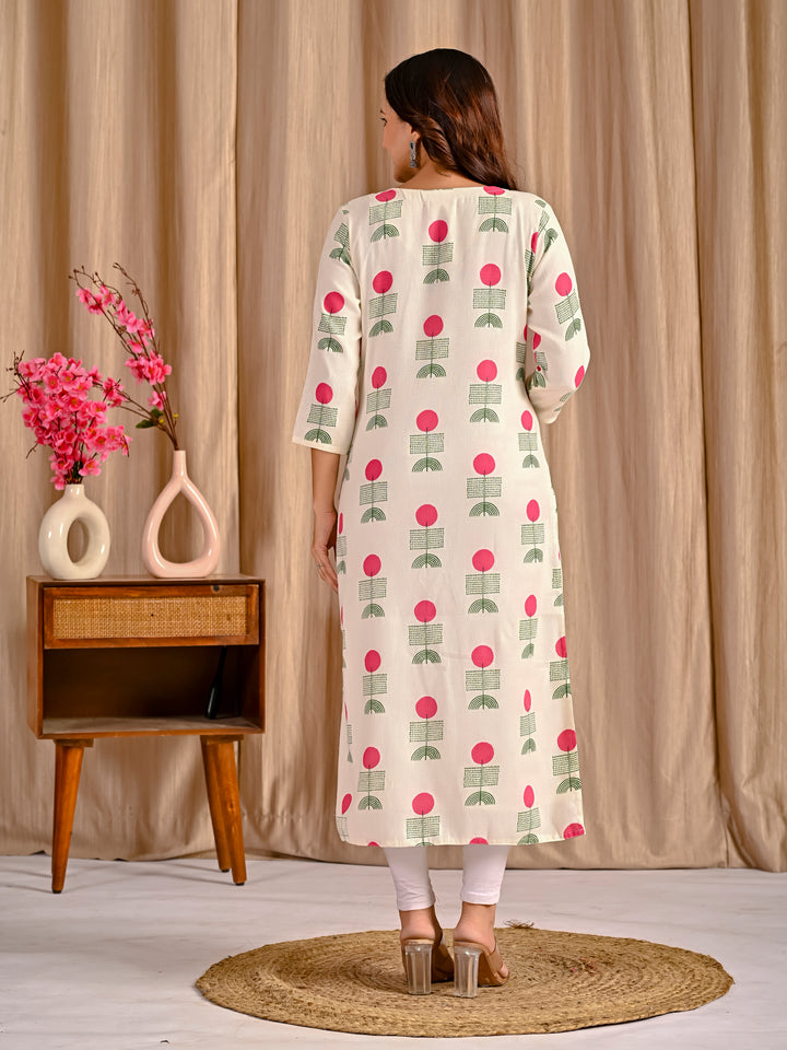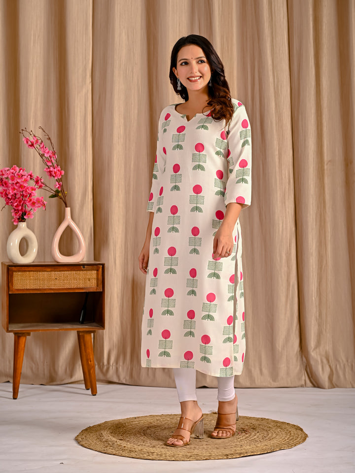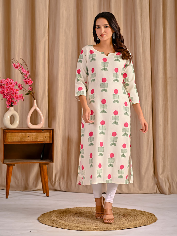 This printed ethnic wear kurti is presented to you by Gulabchand Prints, A well-known brand in hand block prints from over 9 decades. This exclusively hand stitched kurti is made of 100% pure cotton fabric with having printed prints over it. The kurti is best suitable for you to showcase your women hood. Wear this at your ease and the fabric is so smooth to skin that you will love it and the attractive prints adds more charm to the same.