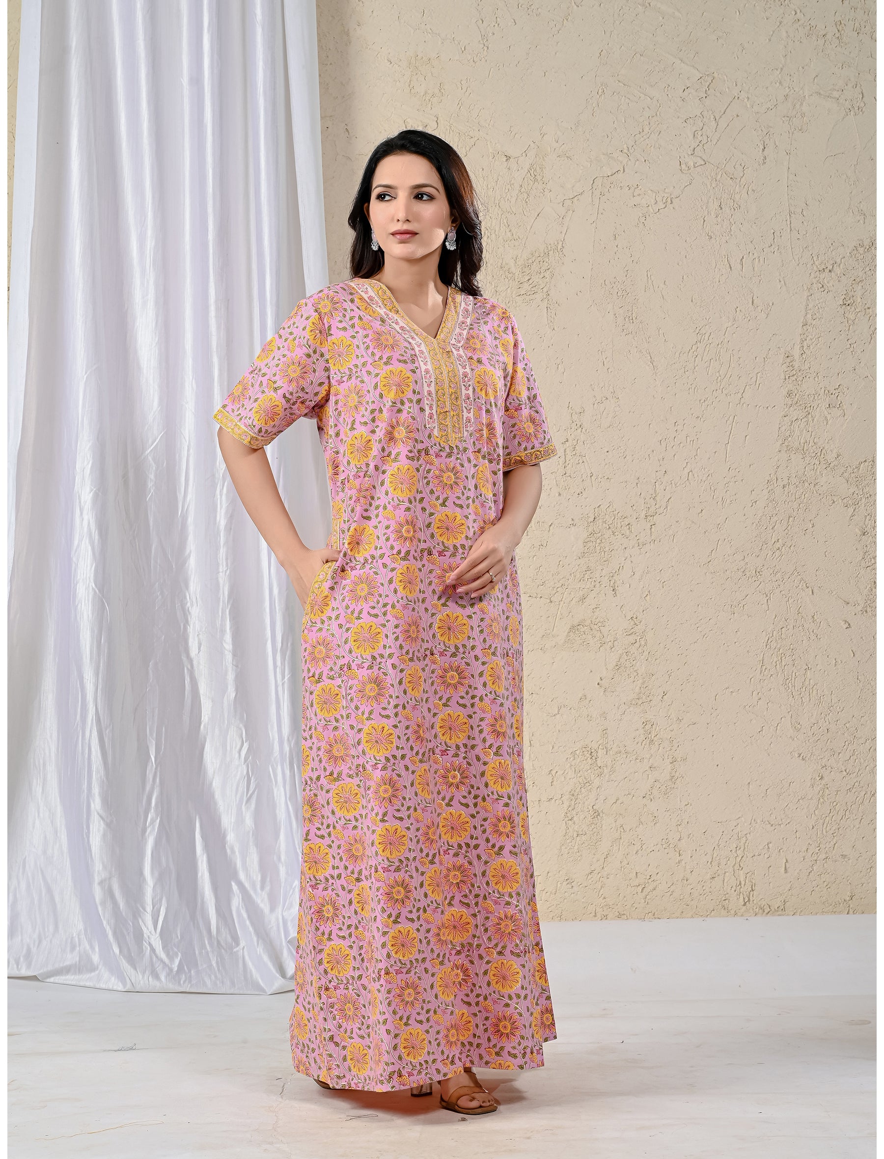 This hand block printed night is made of best quality cotton fabric with immersive prints and fancy designs.