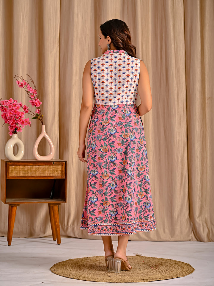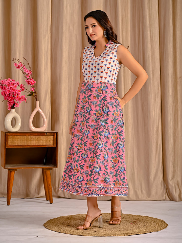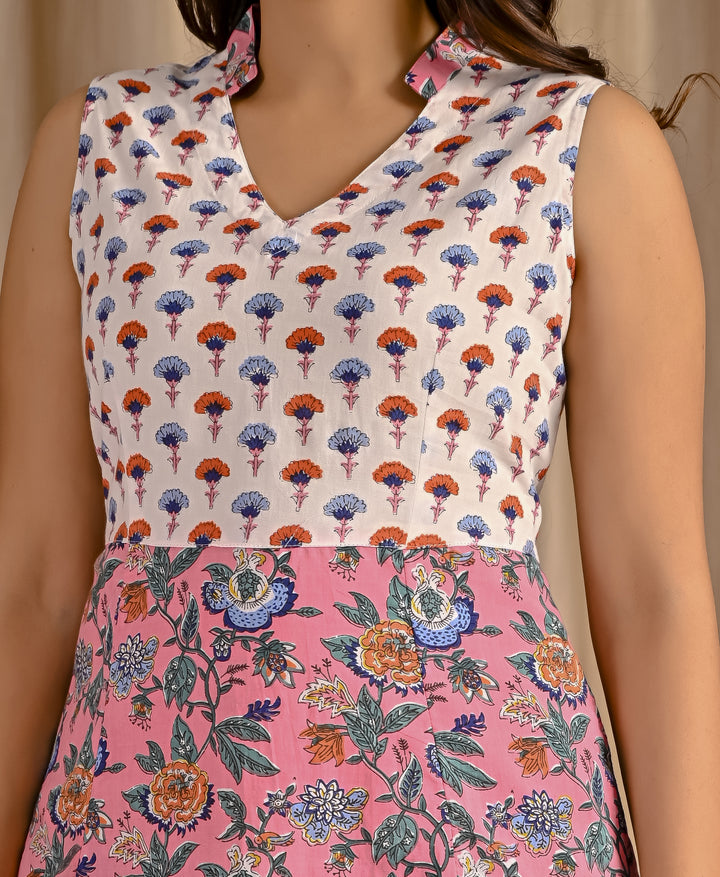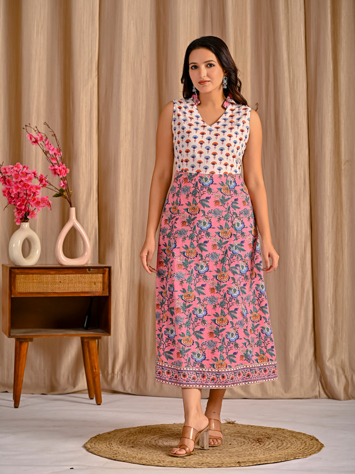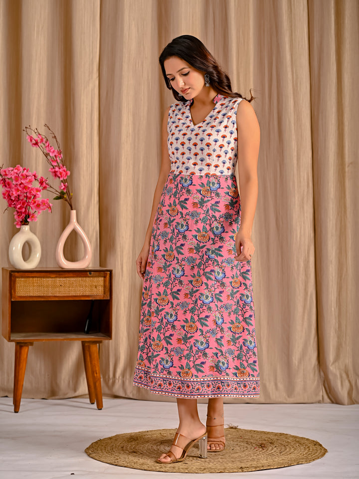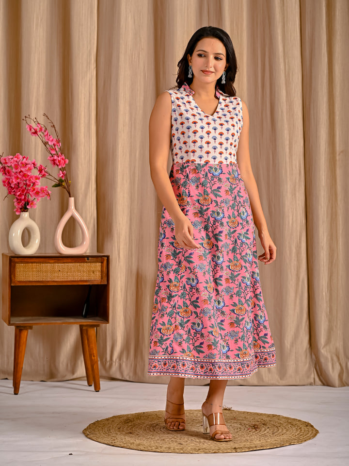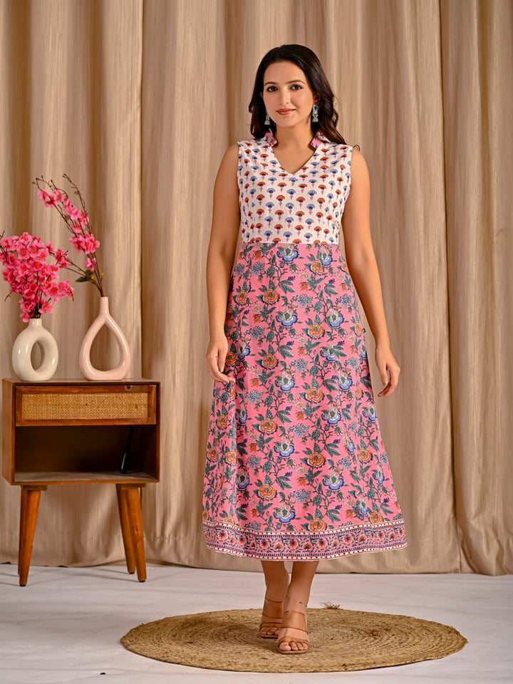 This printed ethnic wear angrakha dress is presented to you by Gulabchand Prints, A well-known brand in hand block prints from over 9 decades. This exclusively hand stitched dress is made of 100% pure cotton fabric with having printed prints over it. The dress is best suitable for you to showcase your women hood. Wear this at your ease and the fabric is so smooth to skin that you will love it and the attractive prints adds more charm to the same.
