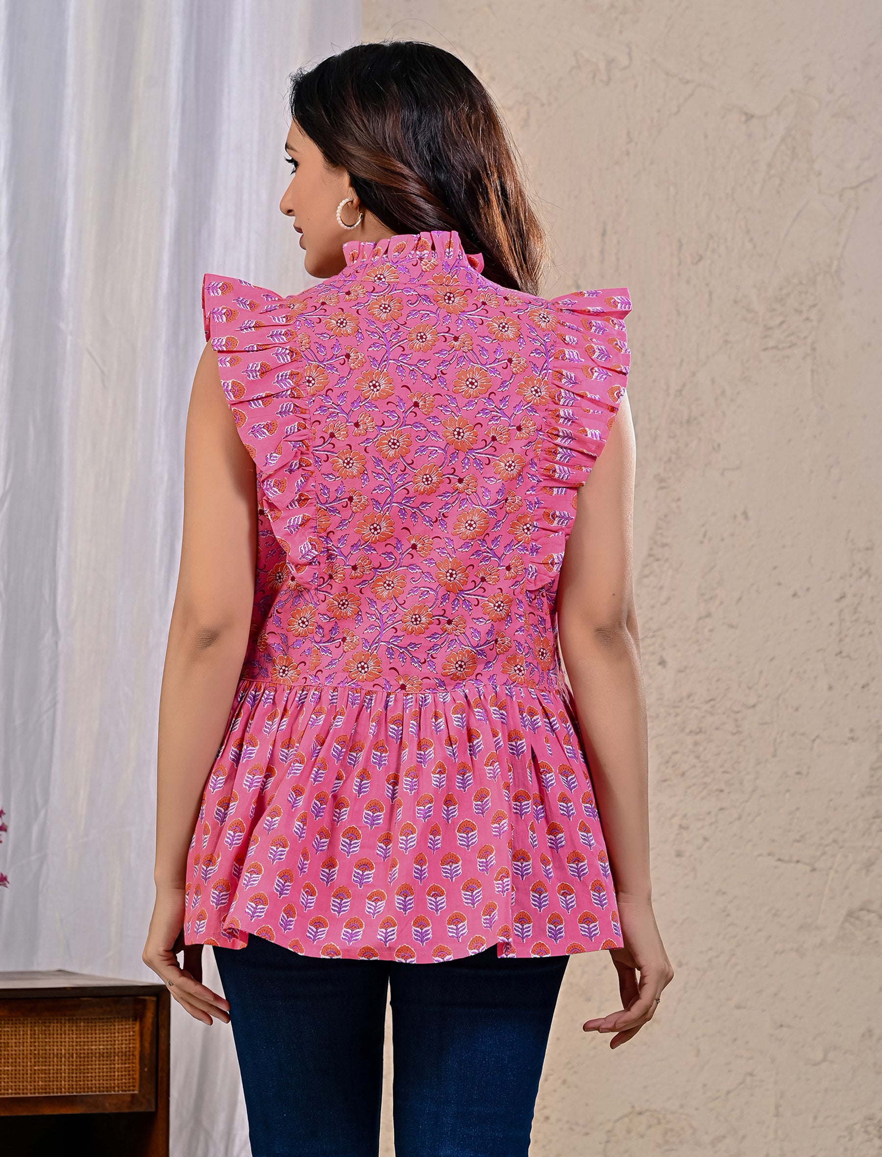 Hand Block Printed Cotton Top By Gulabchand Prints