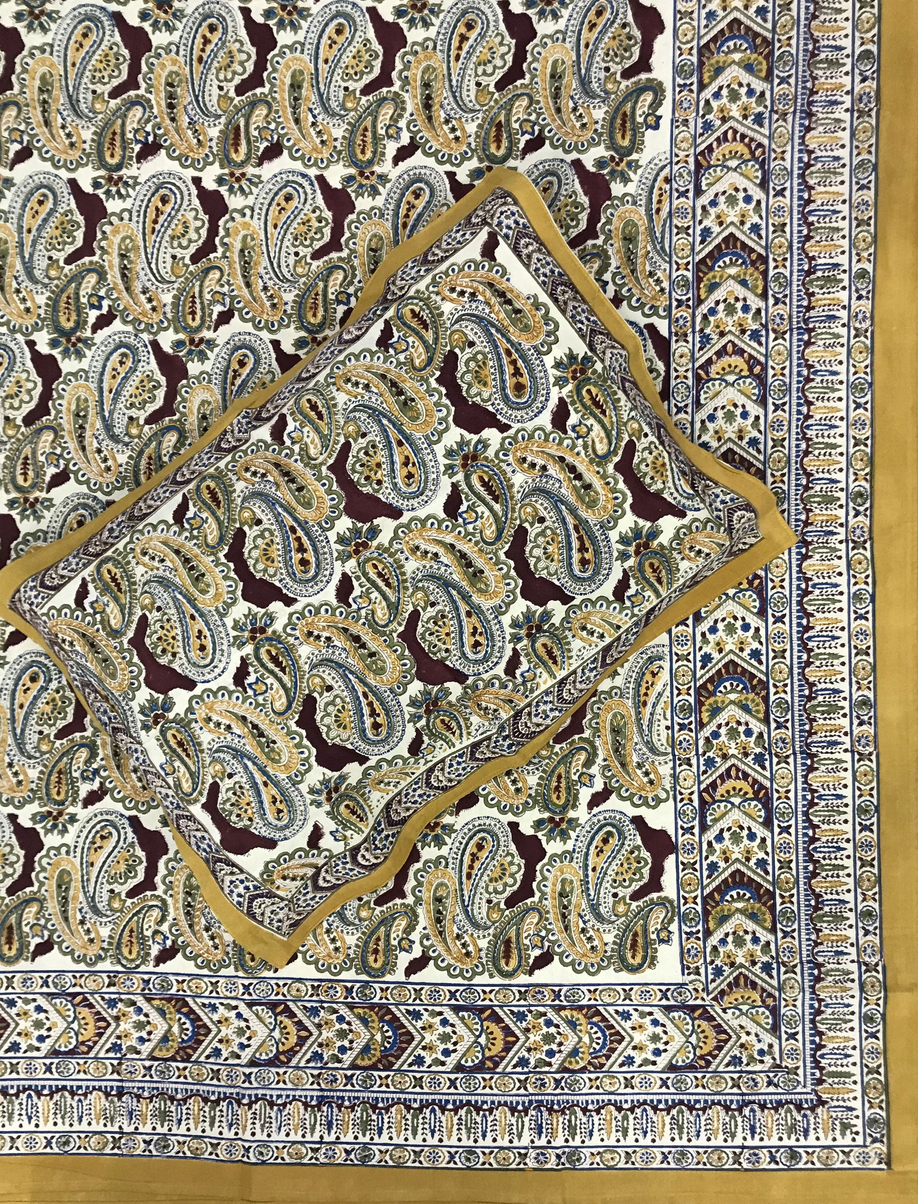 This hand block printed double bedsheet is presented to you by Gulabchand Prints, A well-known brand in hand block prints from over 9 decades. This exclusively hand stitched bedsheet is made of 100% pure cotton fabric with having hand block printed prints over it. The bedsheet is best suitable for your home decor.