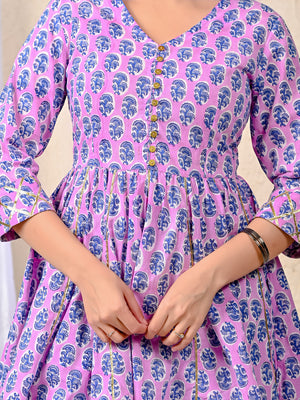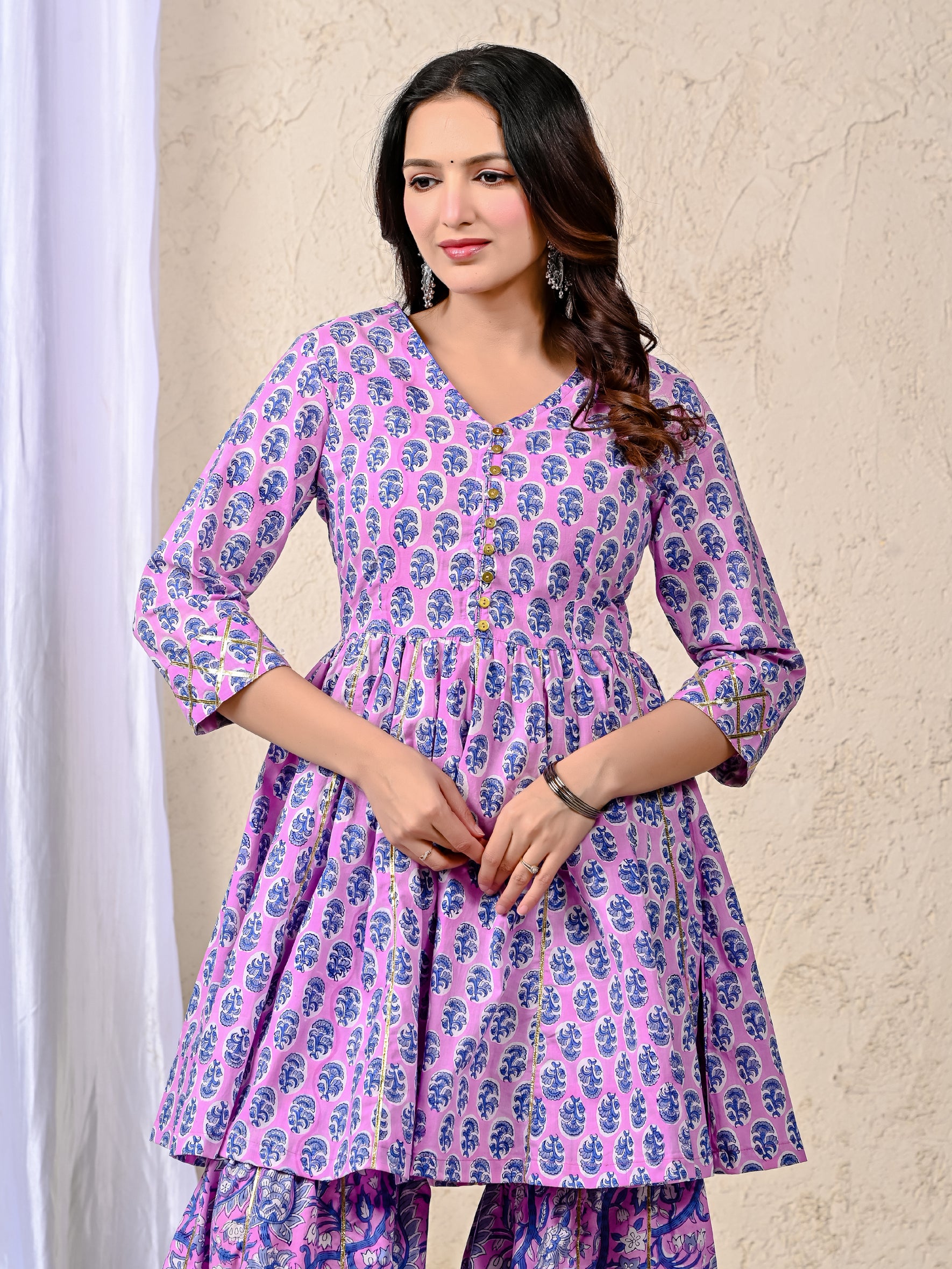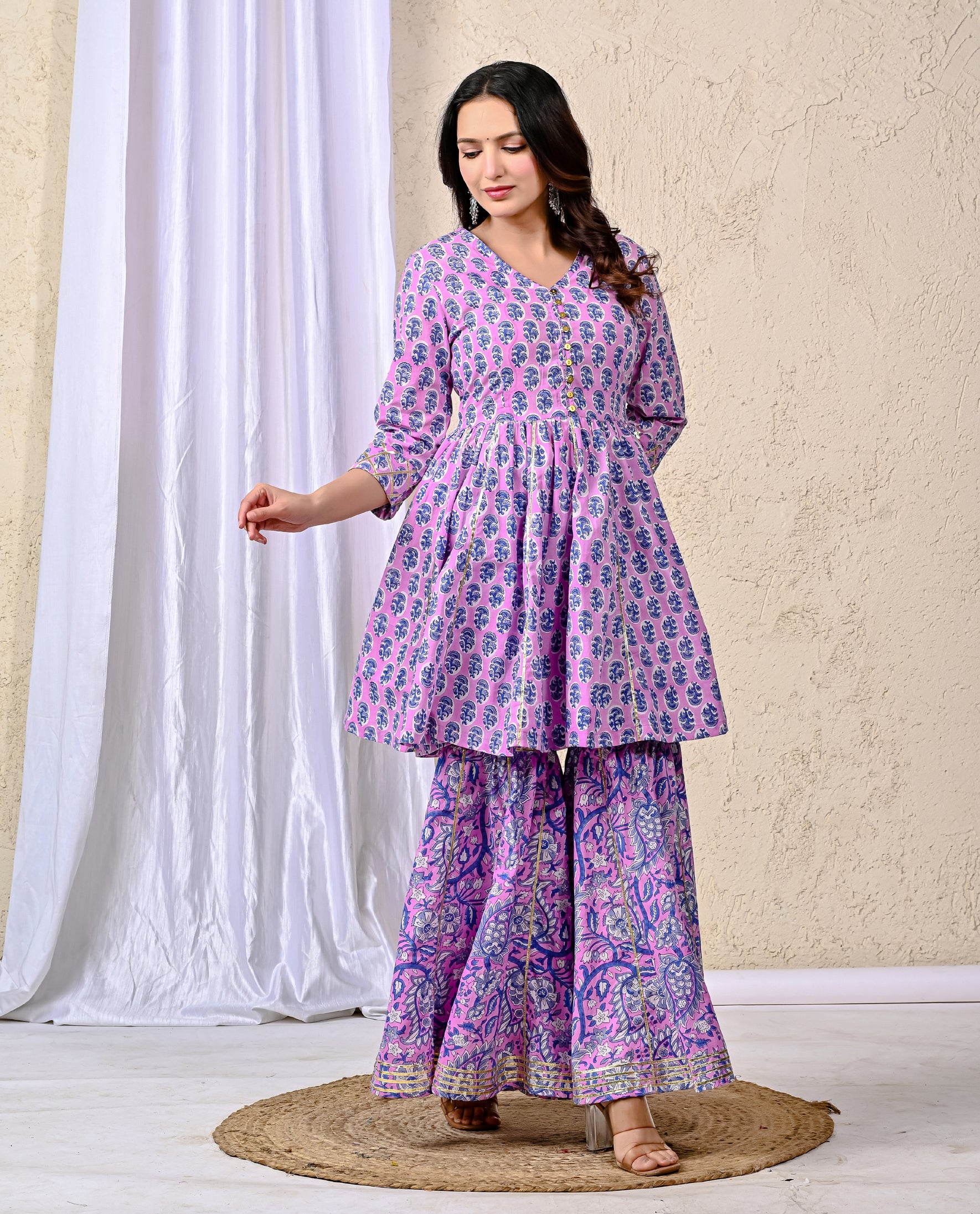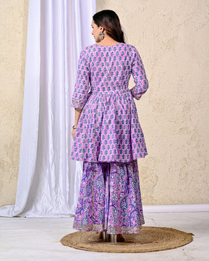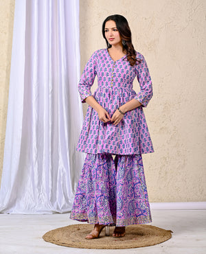 Purple Block Printed Cotton Sharara Set For Women