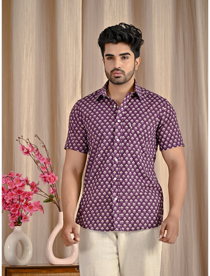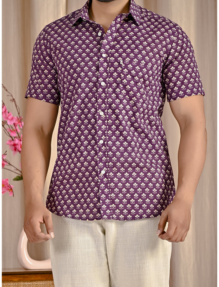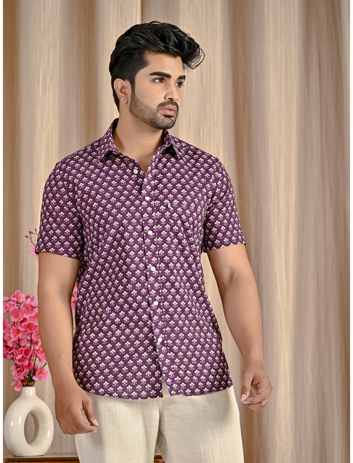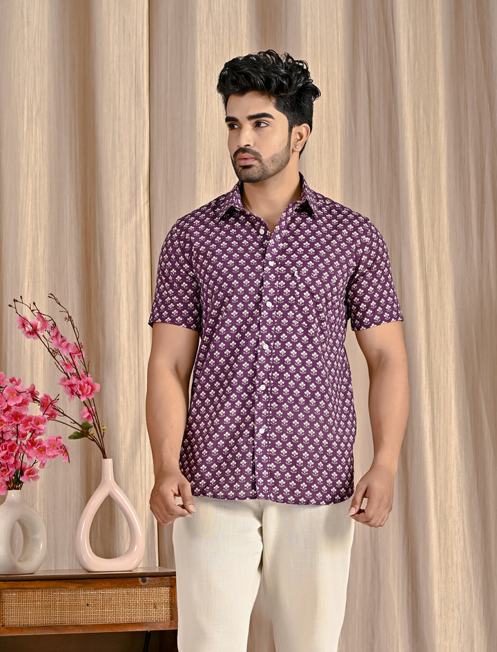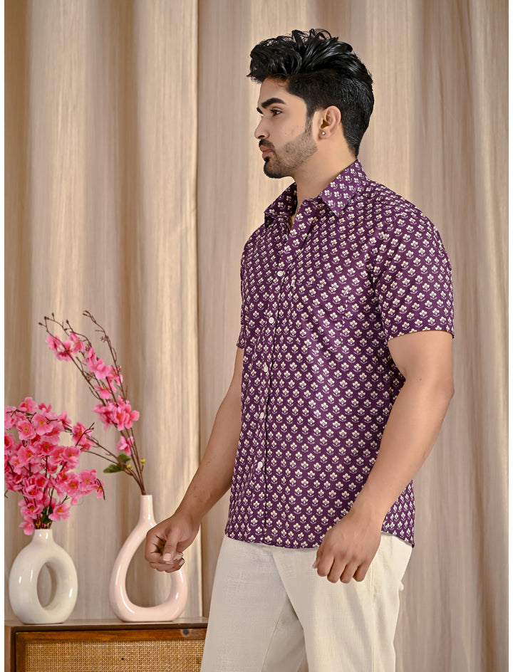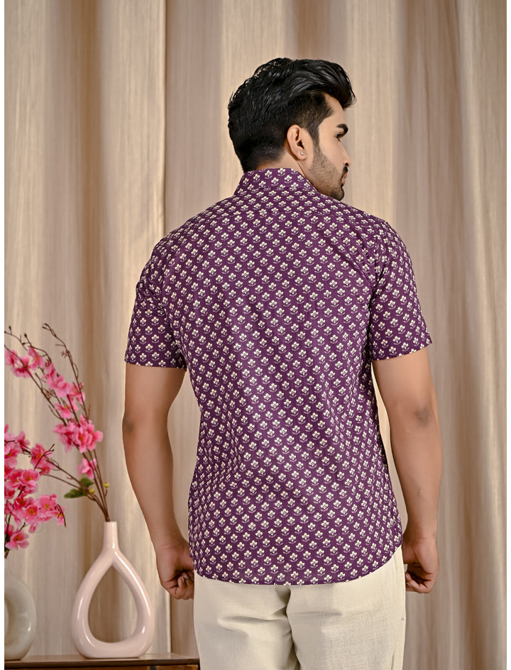 Purple Cotton Printed Half Sleeves Shirt