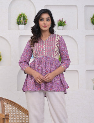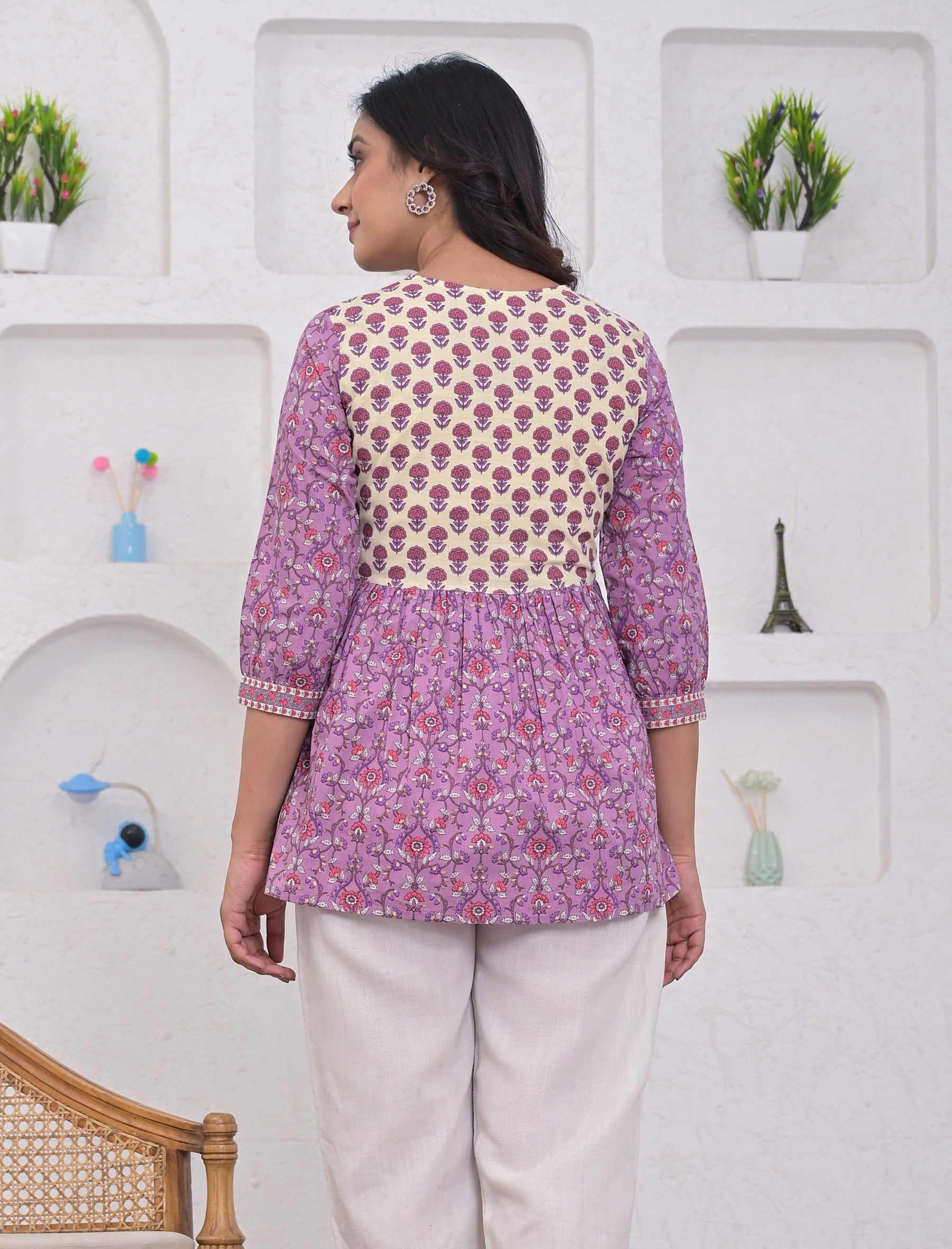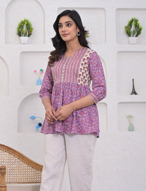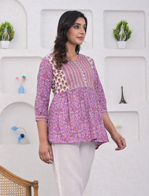 Hand Block Printed Cotton Top By Gulabchand Prints