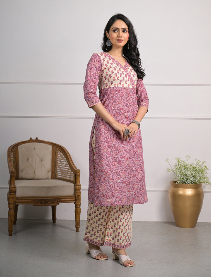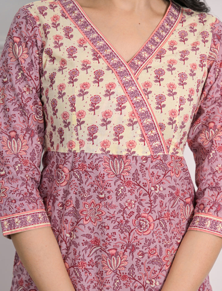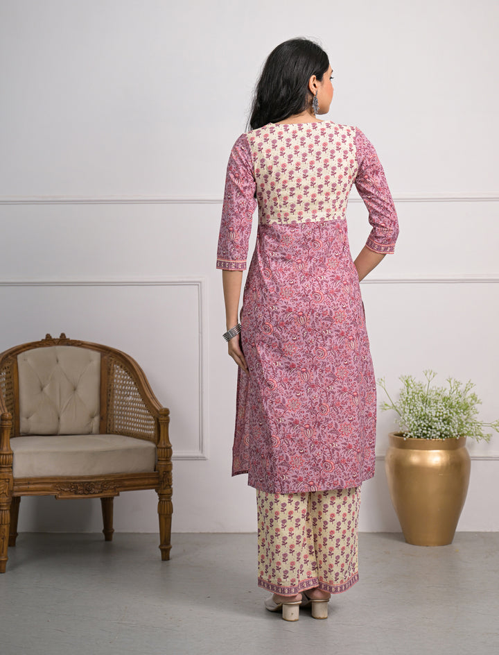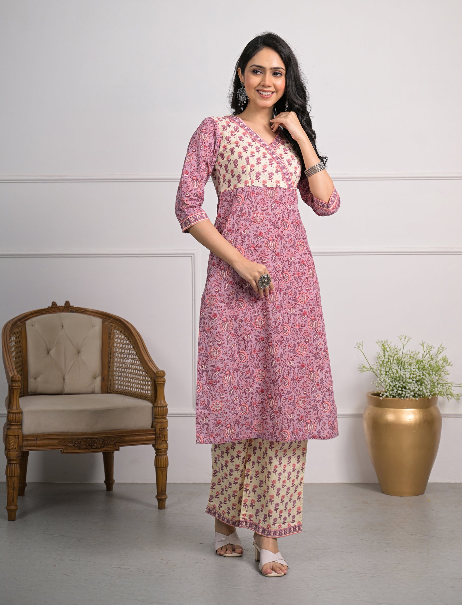 Purple Printed Cotton Block Printed Pant Set Of 2