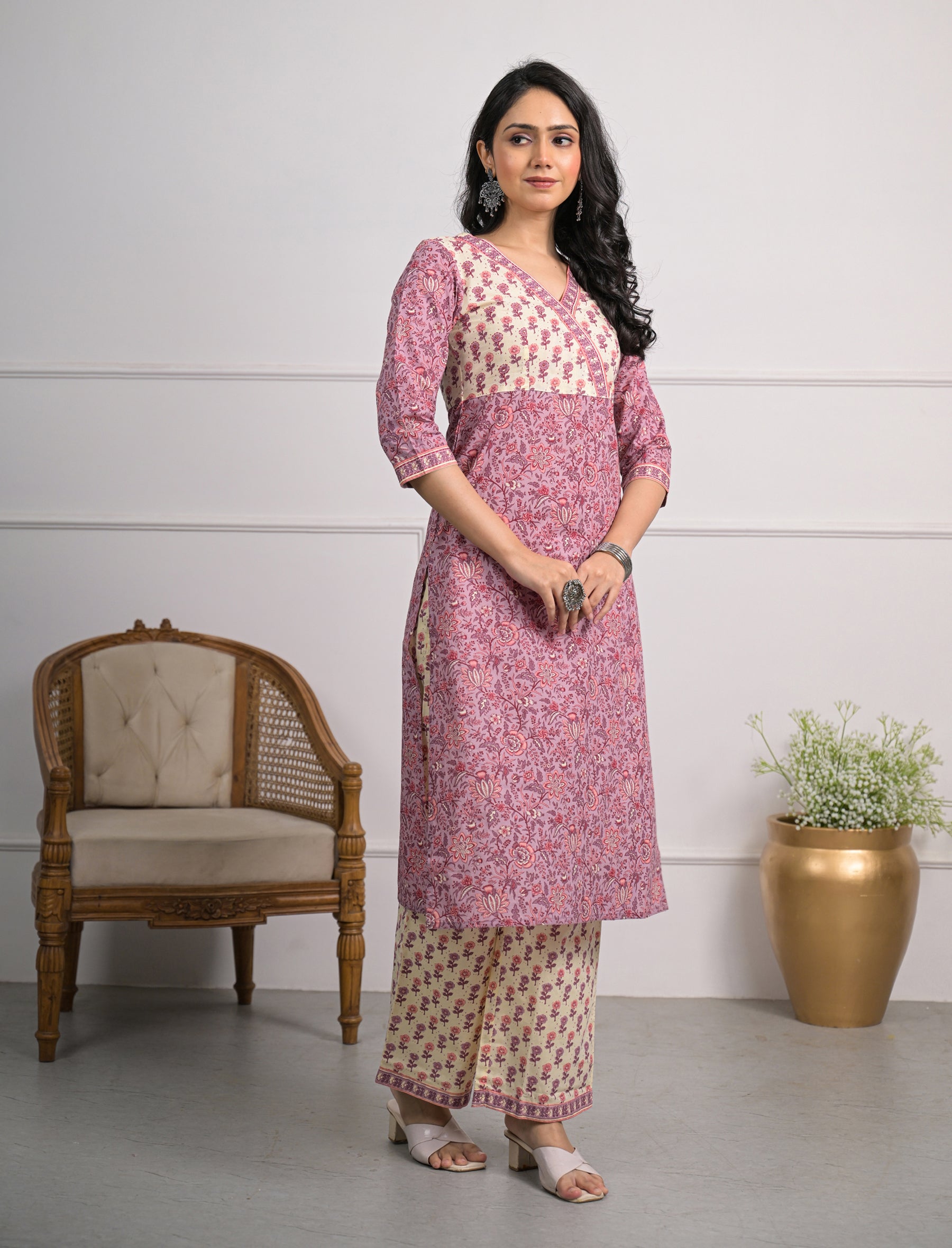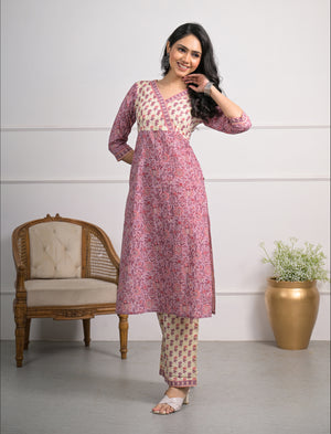 This printed ethnic wear kurta set is presented to you by Gulabchand Prints, A well-known brand in hand block prints from over 9 decades. This exclusively hand stitched kurta set is made of 100% pure cotton fabric with having printed prints over it. The kurta set is best suitable for you to showcase your women hood. Wear this at your ease and the fabric is so smooth to skin that you will love it and the attractive prints adds more charm to the same.