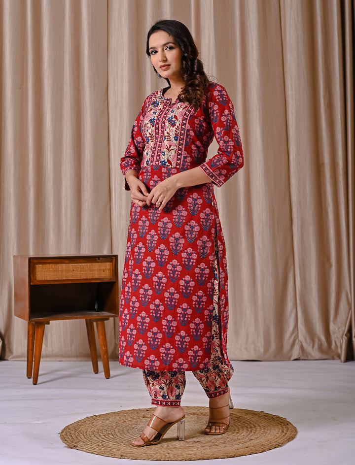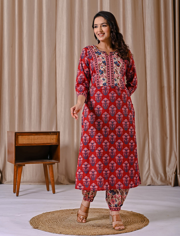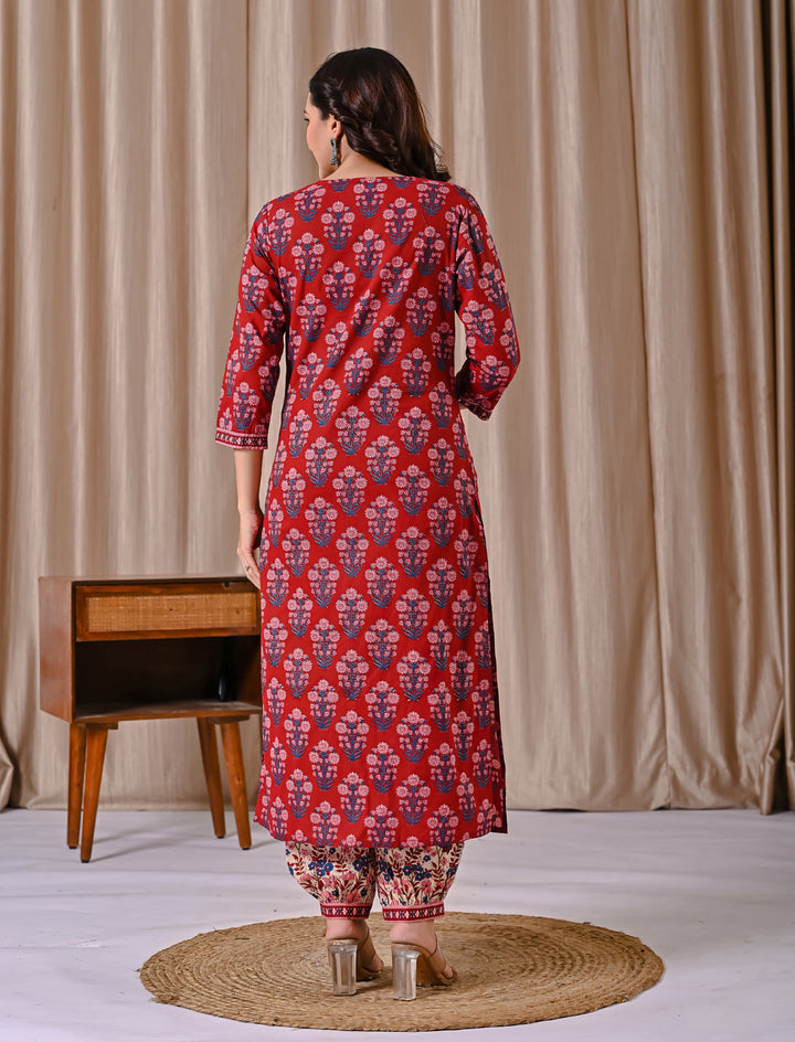 Experience timeless elegance with the Red Butta Block Printed Straight Fit Kurta Afghani Set. Crafted with precision, this set features intricate block prints on a soft pink fabric, offering both comfort and style. The straight fit design allows for ease of movement, while the traditional Afghani style adds a unique cultural charm. Perfect for casual outings or festive occasions, this set brings a graceful touch to your wardrobe. Embrace a blend of tradition and comfort every time you wear it.
