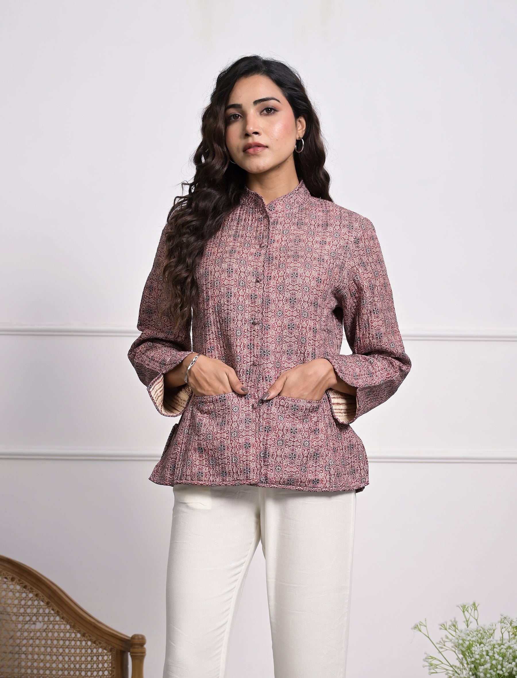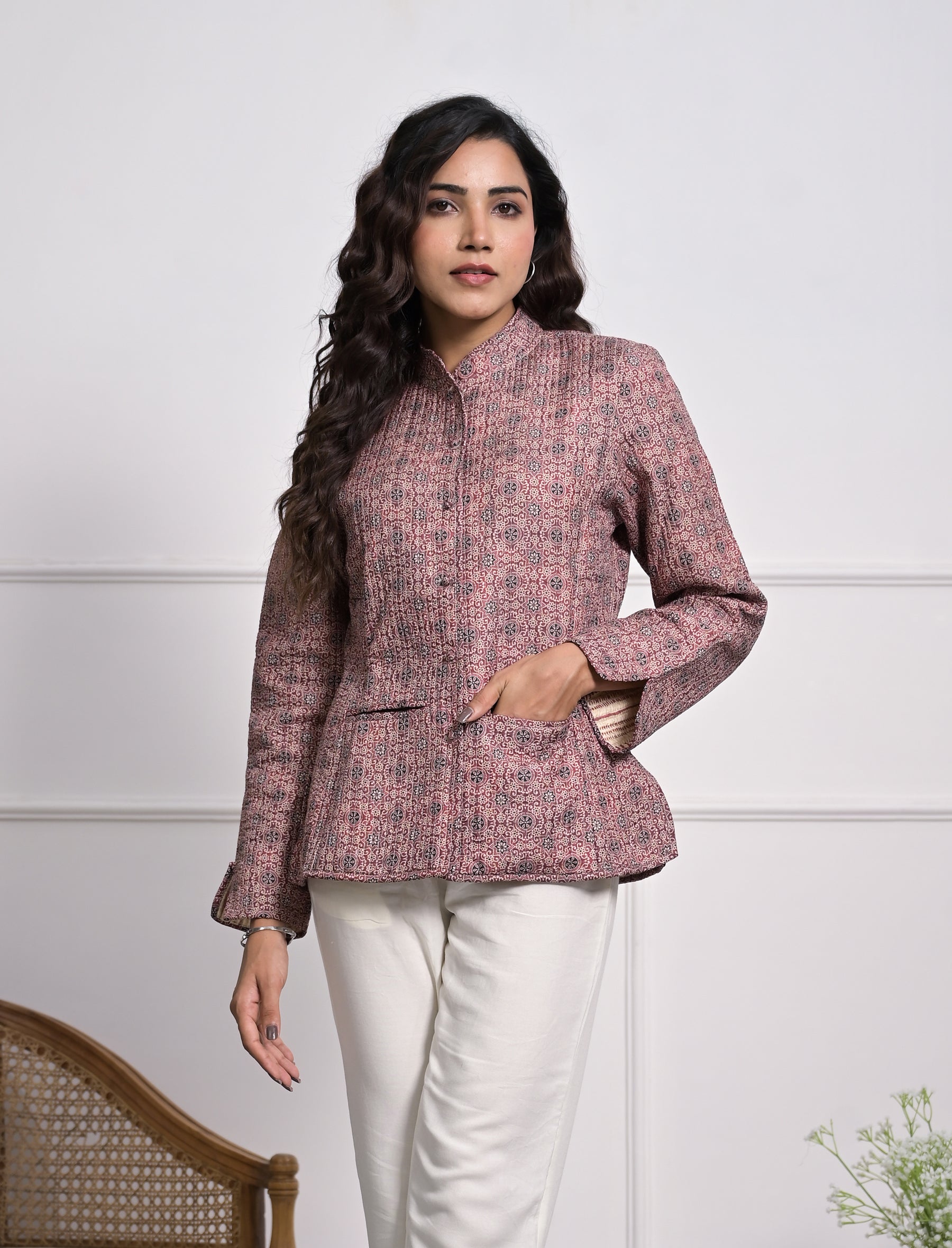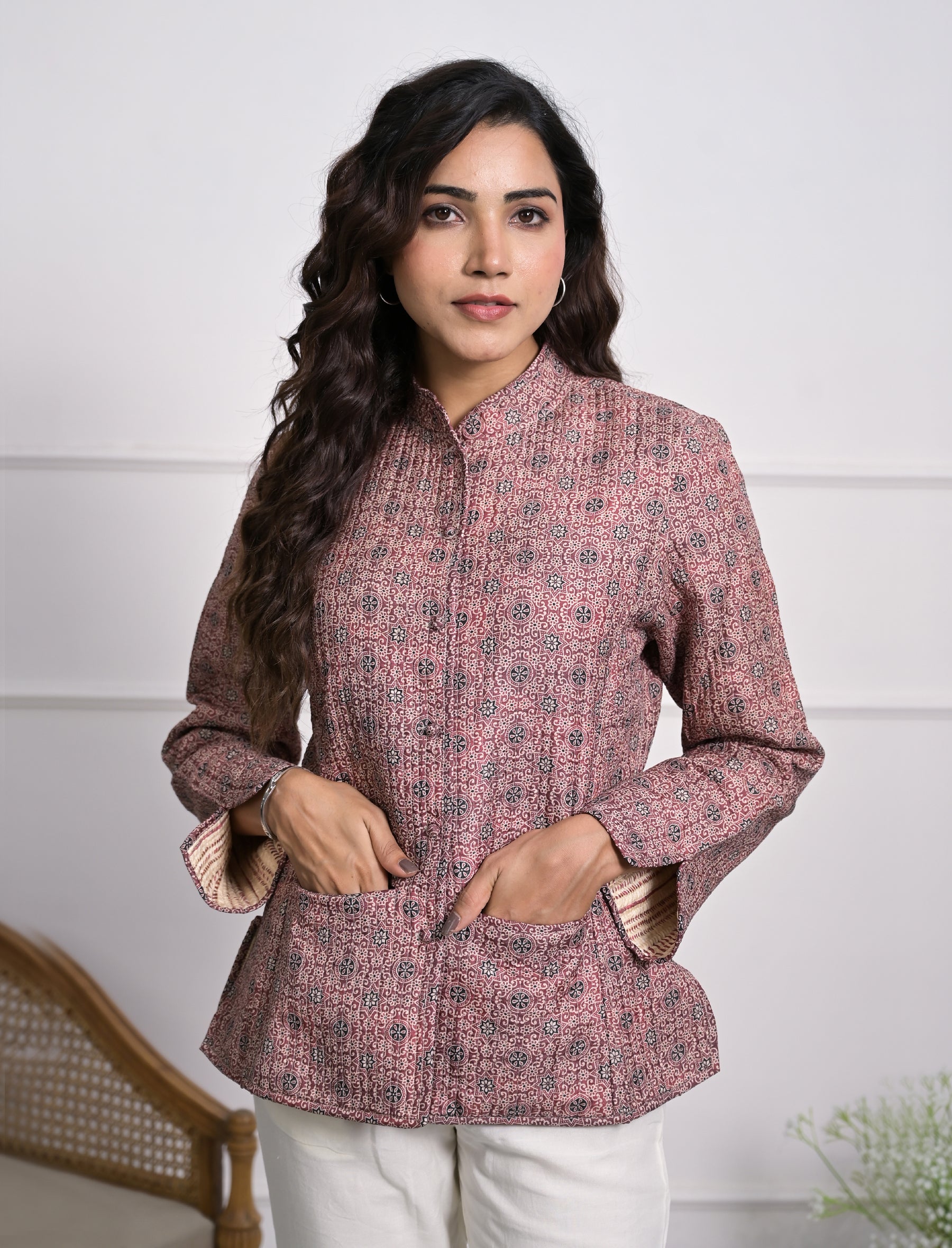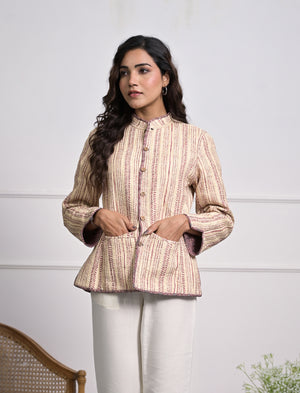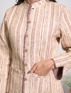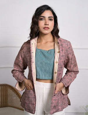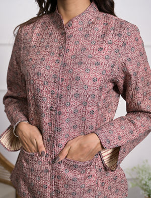 Silk Block Printed Reversible Winter Jacket